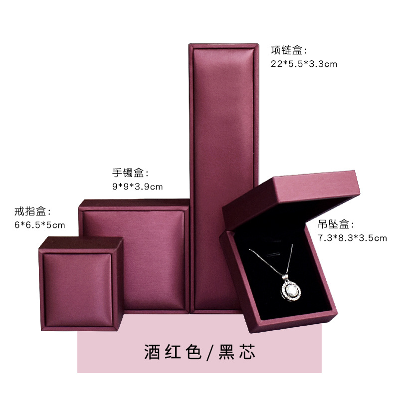 pu thin wall light wine red black core * necklace box 22*5.6 * 3.5cm