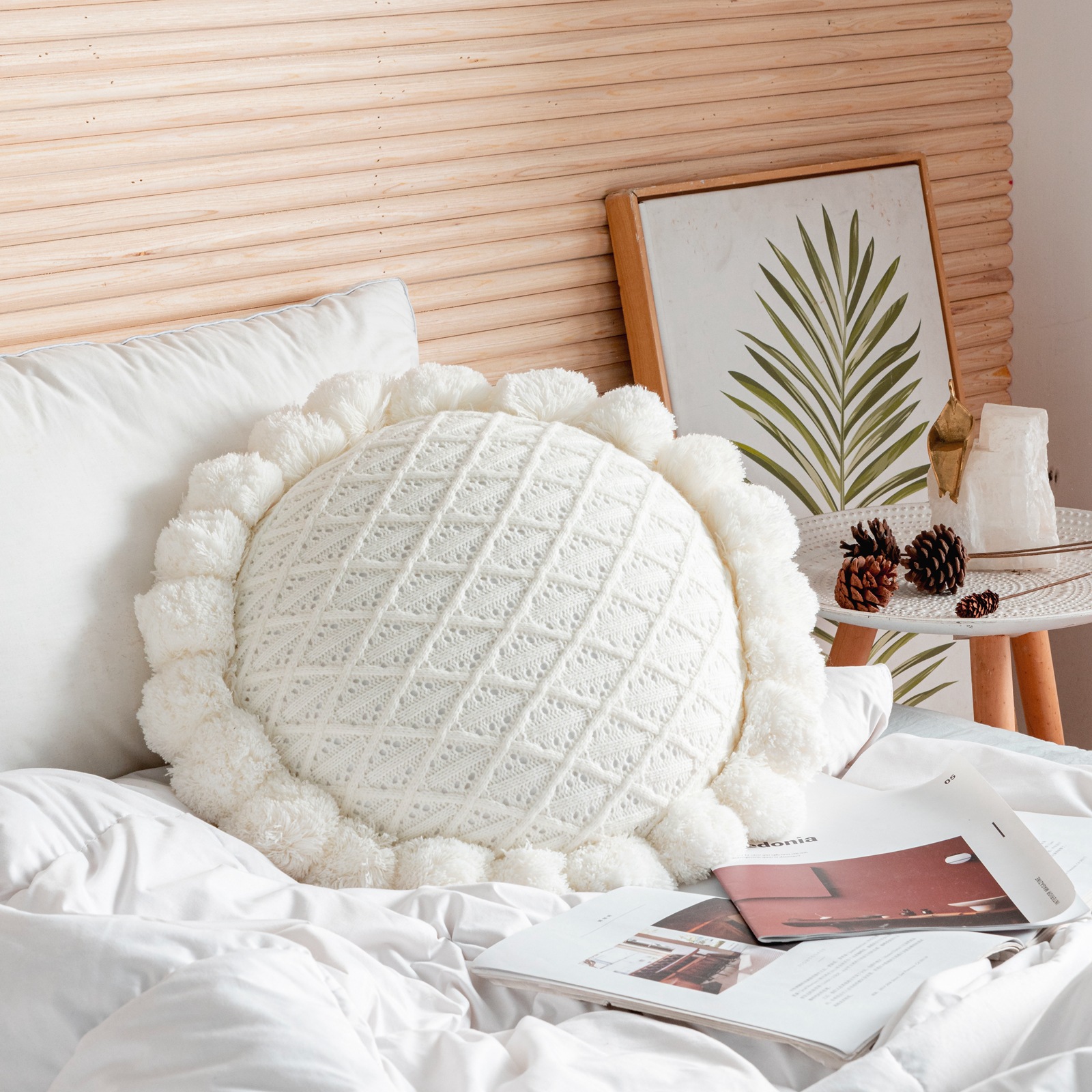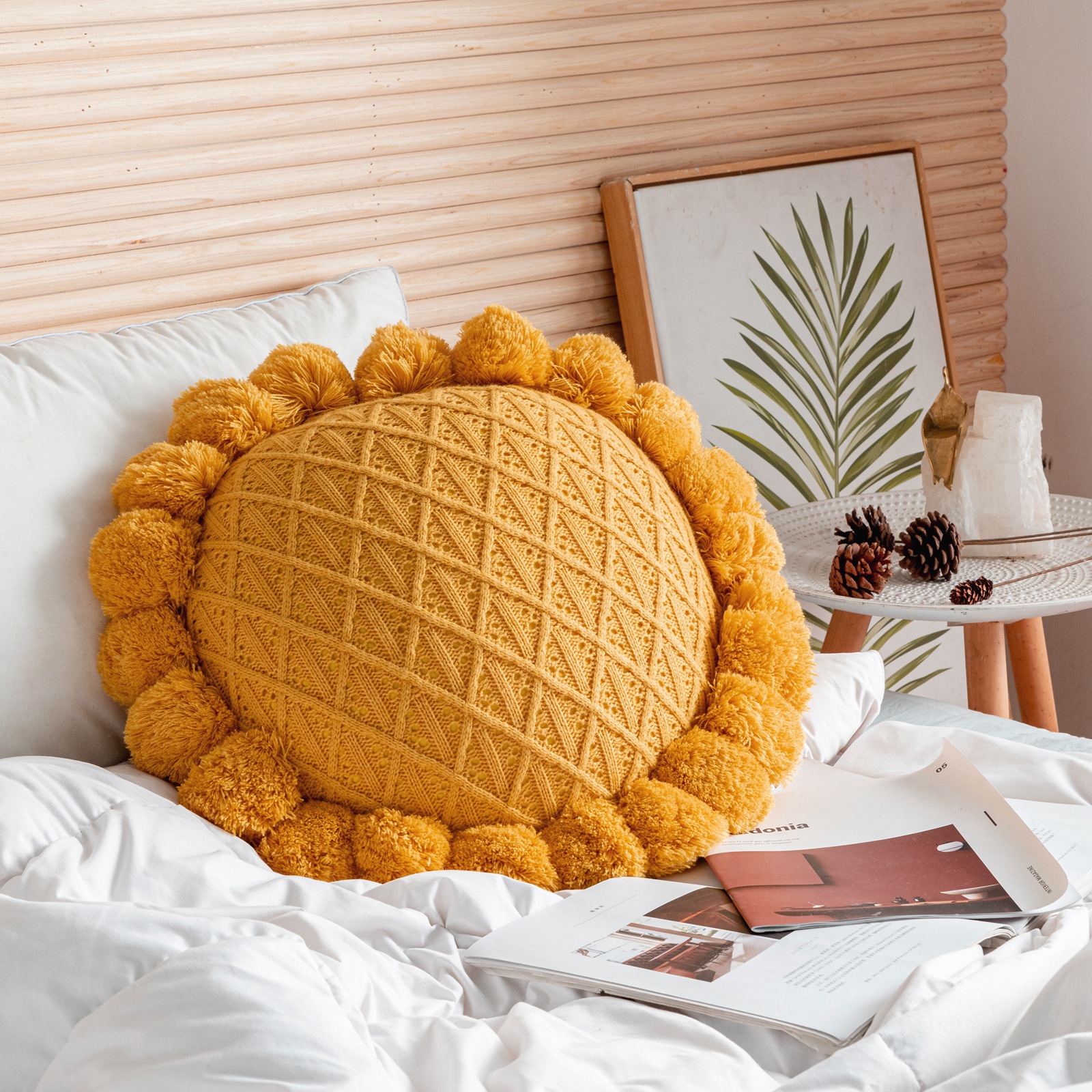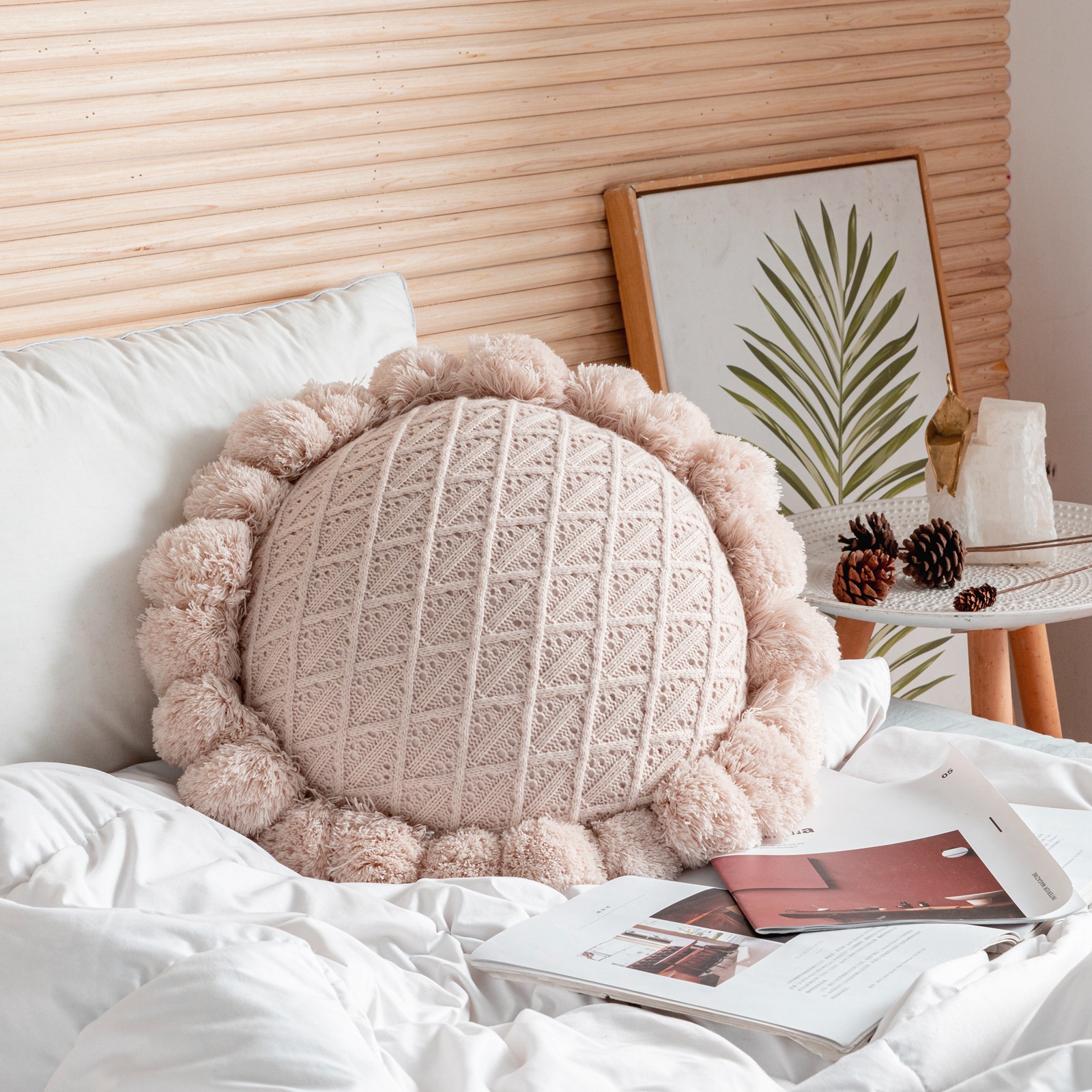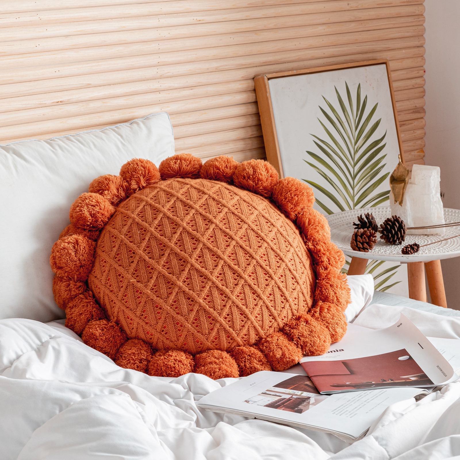 Internet Celebrity Handmade Knitted round Wool Pillow Removable and Washable Fat Fur Ball Pillow Ins Style Bed & Breakfast Camping Cushion