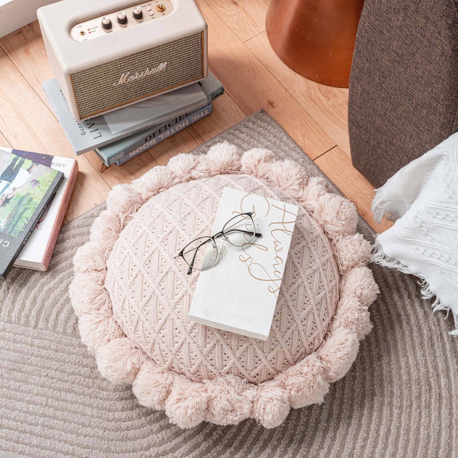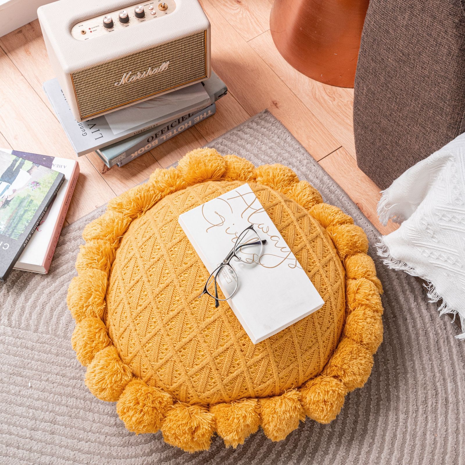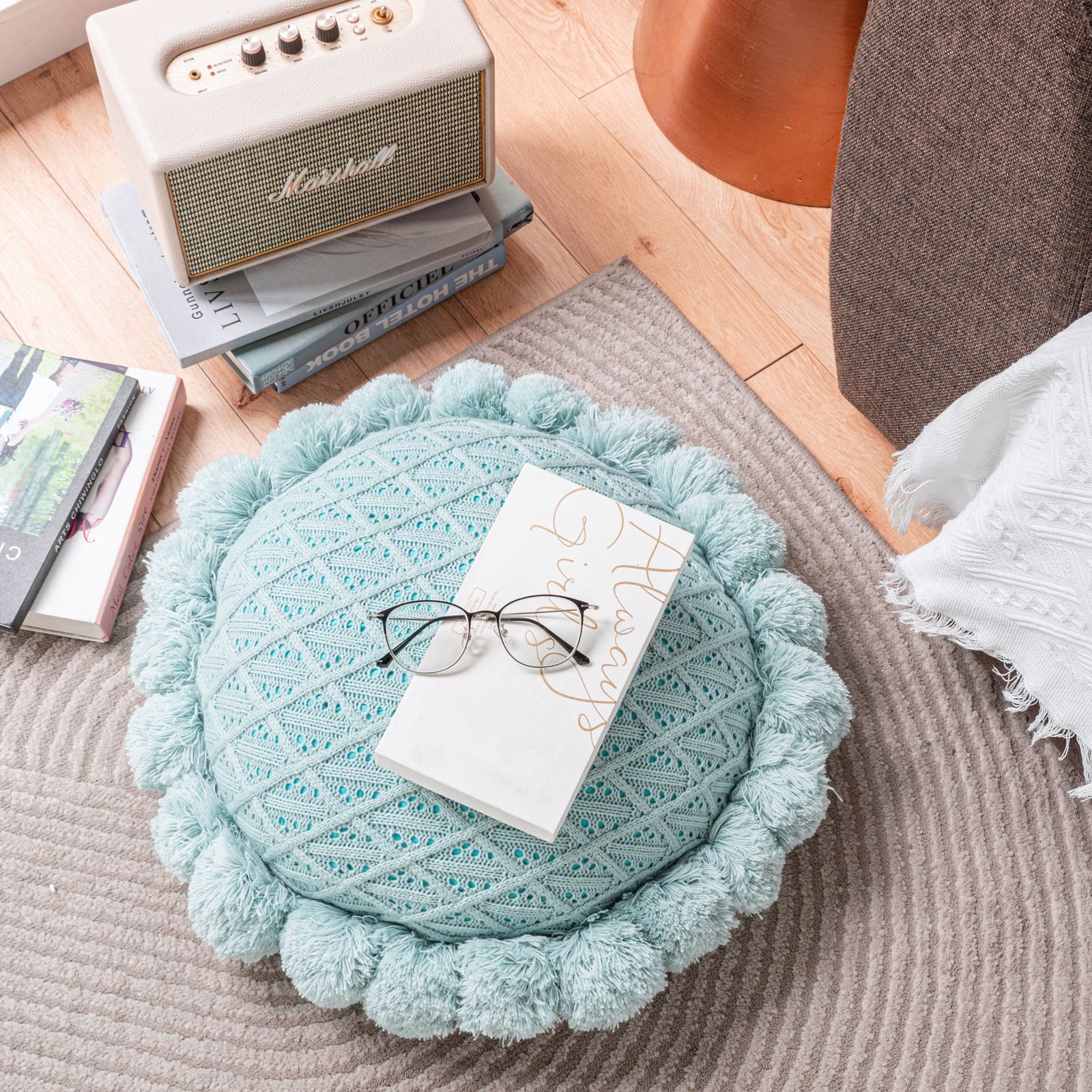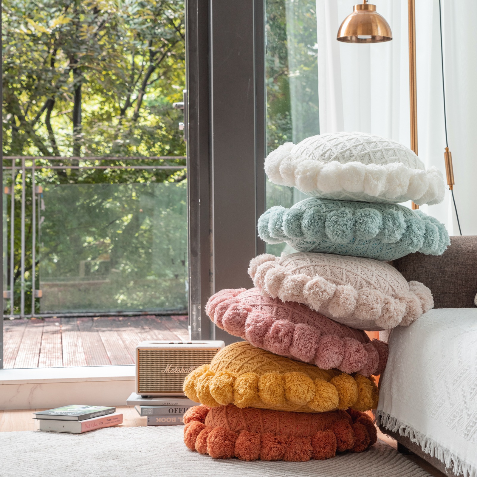Internet Celebrity Handmade Knitted round Wool Pillow Removable and Washable Fat Fur Ball Pillow Ins Style Bed & Breakfast Camping Cushion