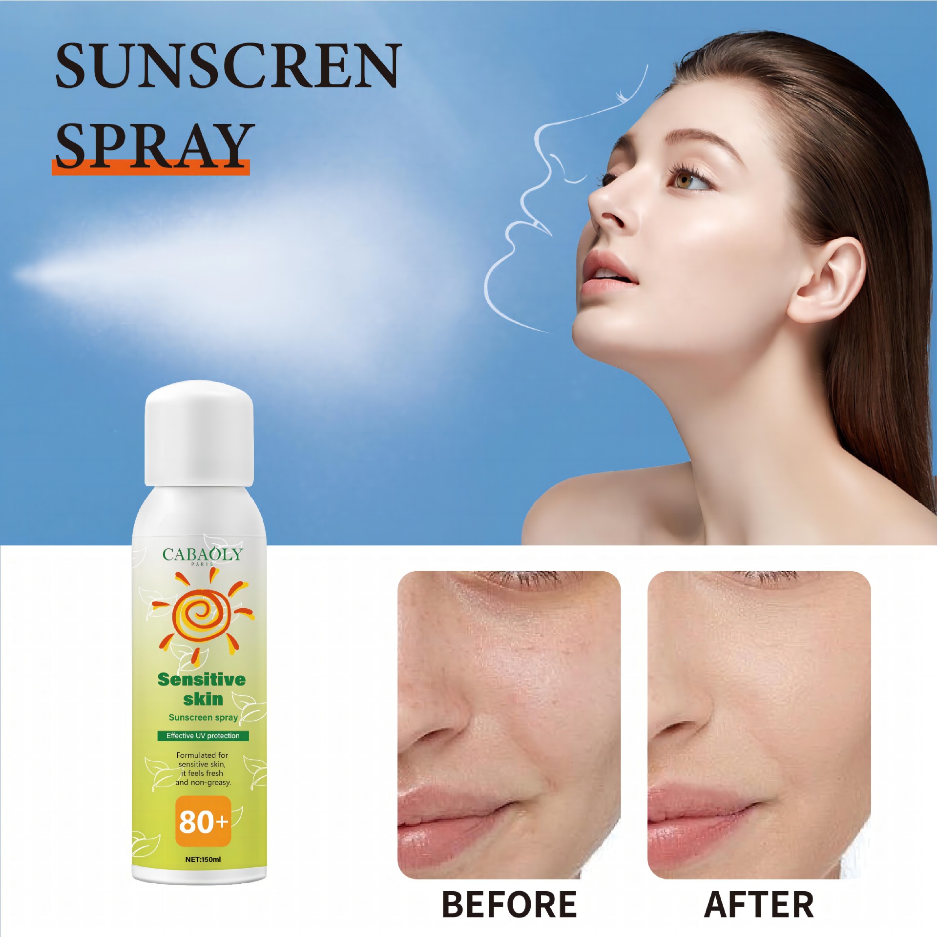 cross-border refreshing not oily sunscreen spray uv-proof sunscreen women's all-body universal waterproof sweat-proof wholesale 中文版
