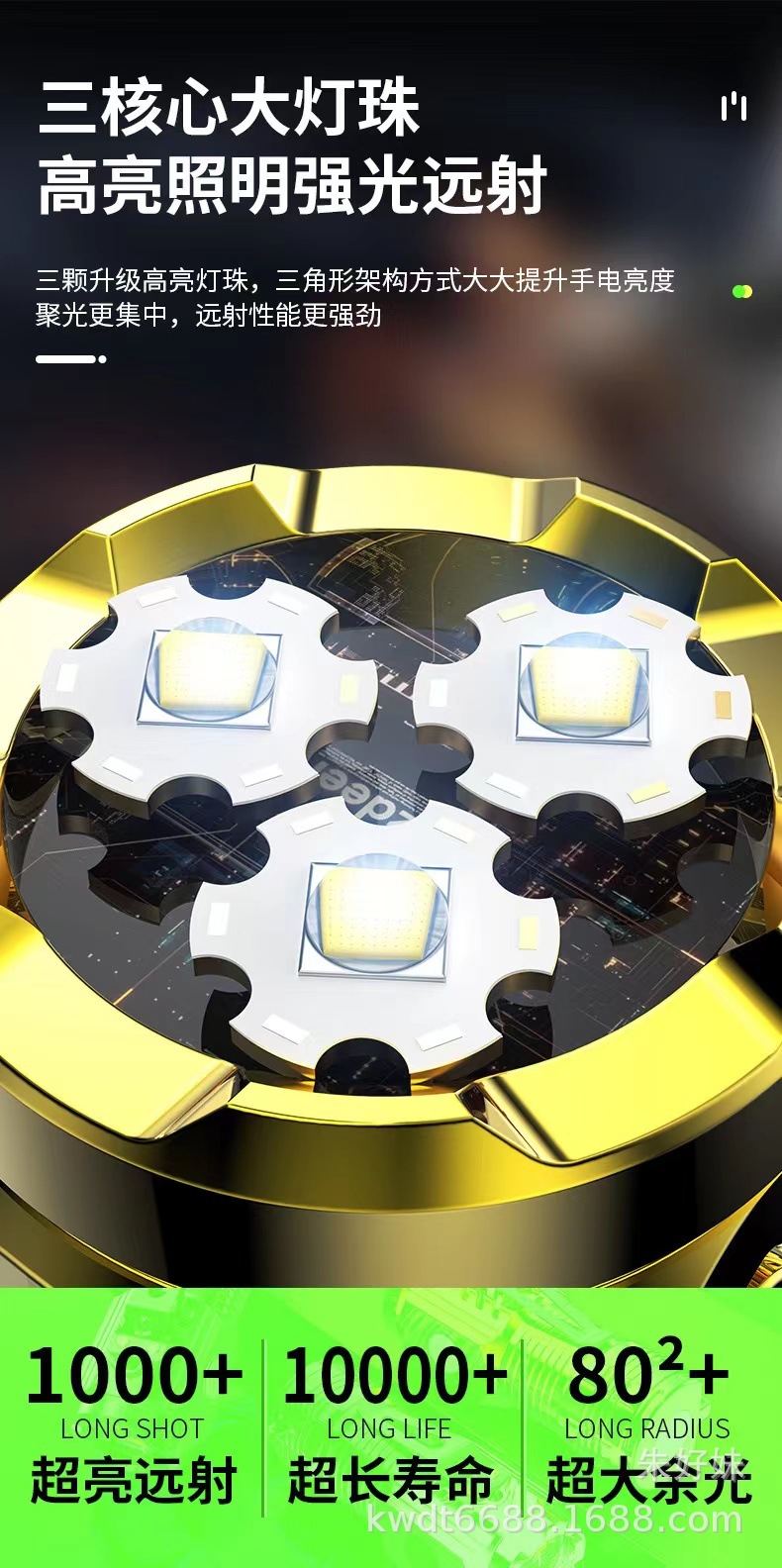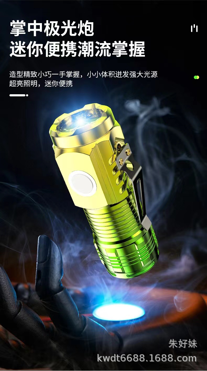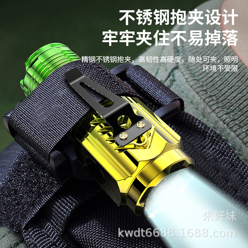 electroplating green three-eye flashlight (strong magnetic + pen holder)