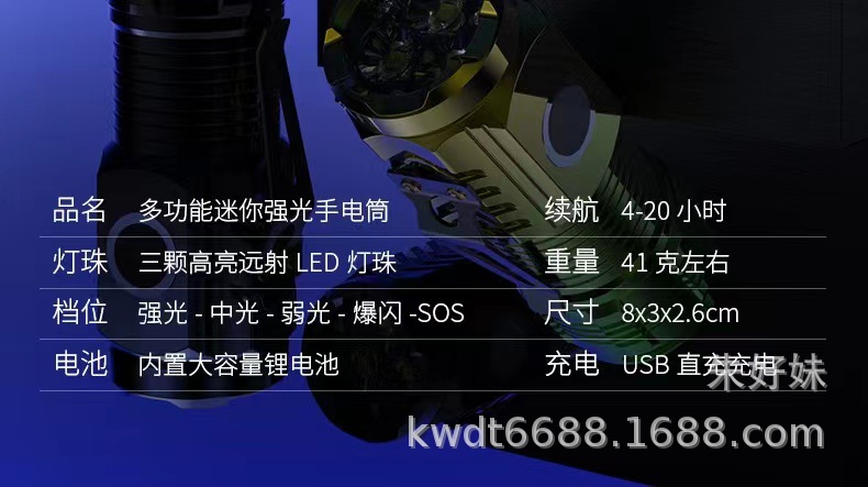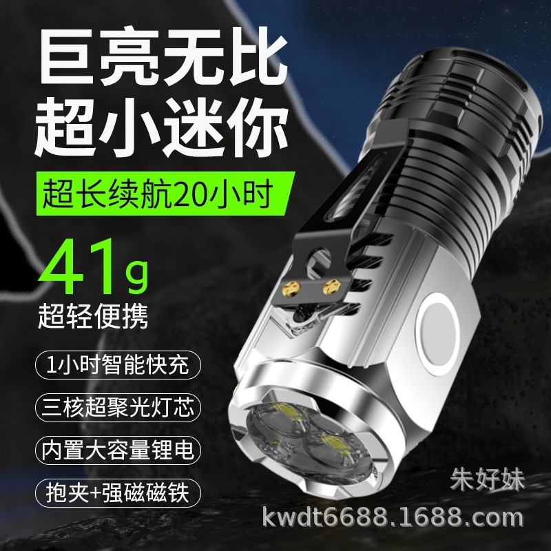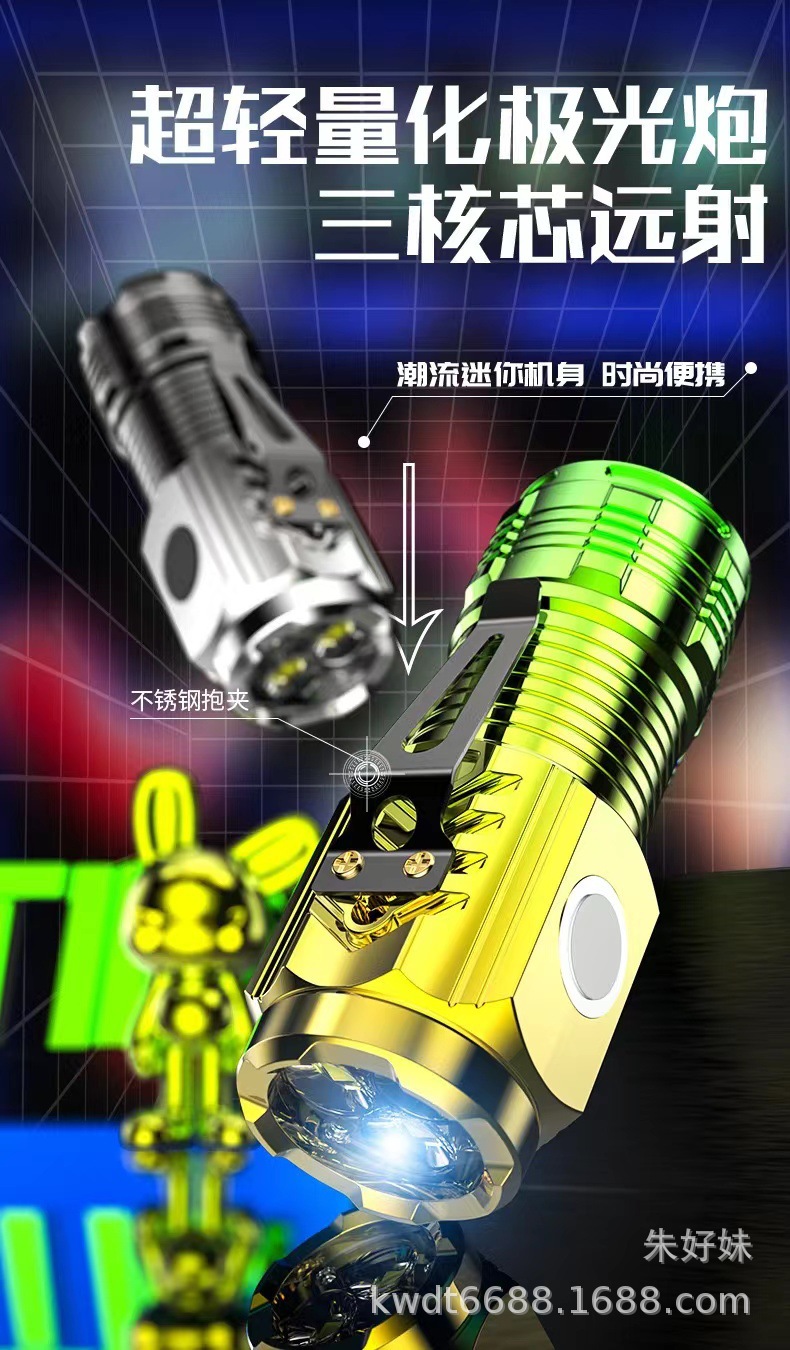 gradient silver three-eye flashlight (strong magnetic + pen holder)