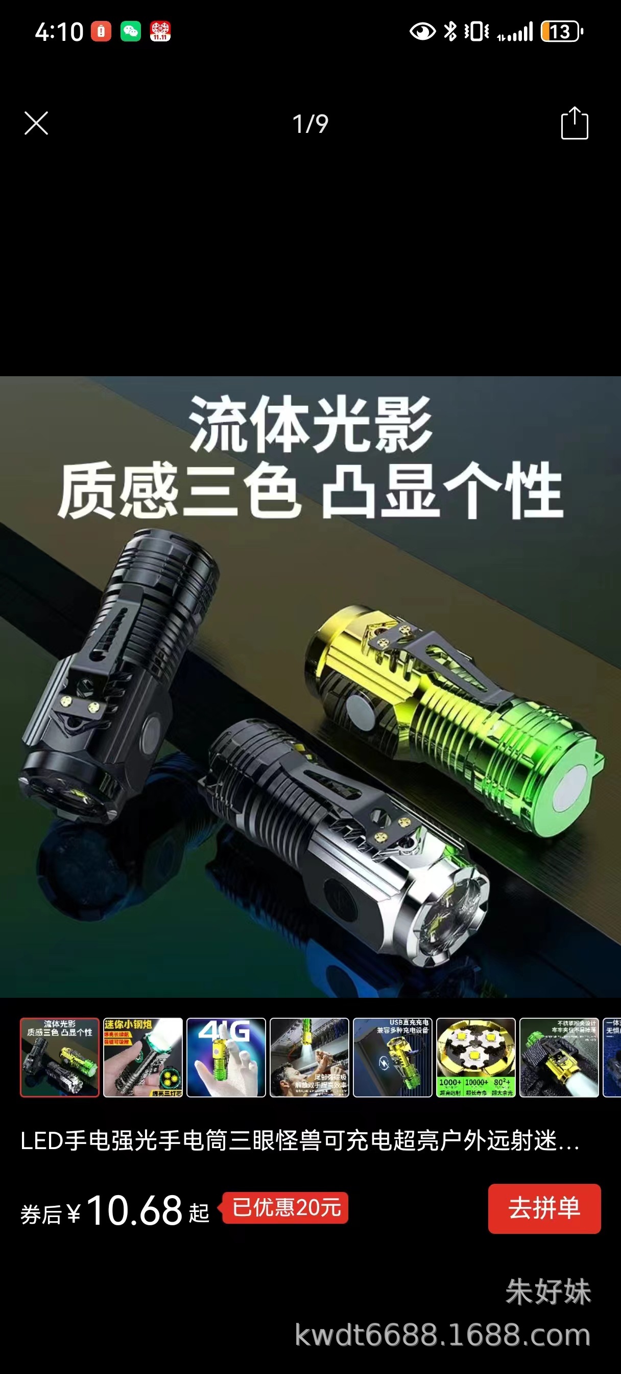 black three-eye flashlight (strong magnetic + pen holder)