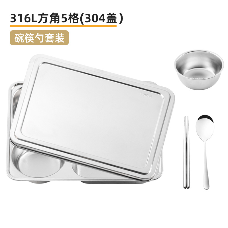 316l fillet plate-5 grid [deep section] +304 cover +304 bowl spoon chopsticks