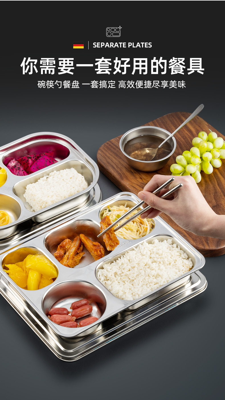 316l fillet dinner plate-5 grid [shallow] +304 bowl +304 chopstick and spoon