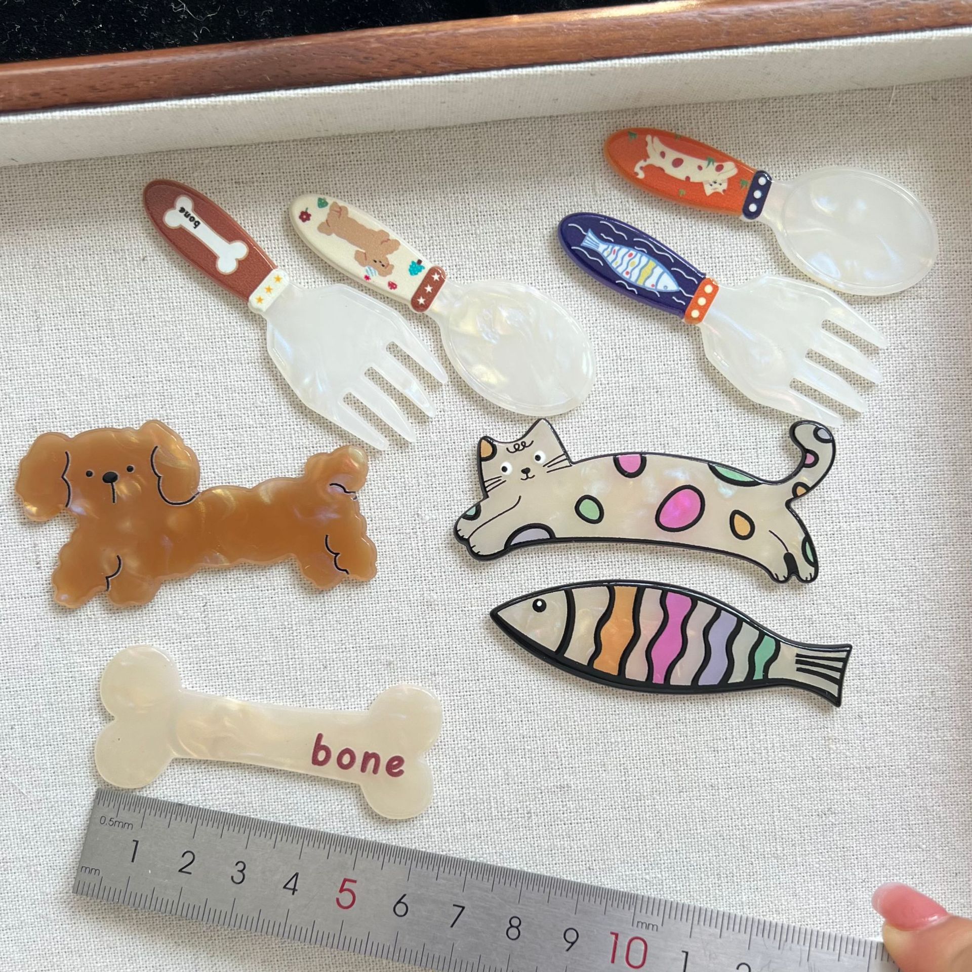 New DIY Acrylic Puppy Kitten Accessories Fork Spoon Tool Accessories Barrettes Headdress Accessories Wholesale 中文版