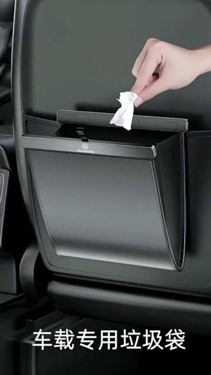 Car-specific garbage bags, easy to store trash. Thin design, does not block the legs. Leather material, high-end atmosphere, selected materials, rubbing does not deform.