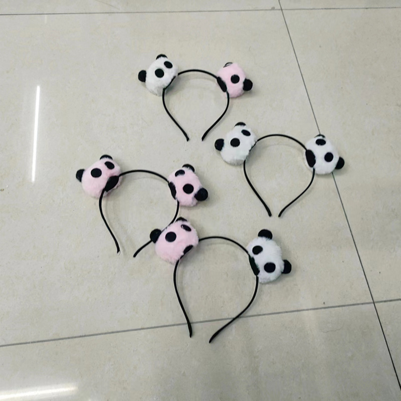 Panda Headband Plush Panda Barrettes Cartoon Cute Headwear for Face Wash Panda Base Same Tee-Dimensional Souvenir