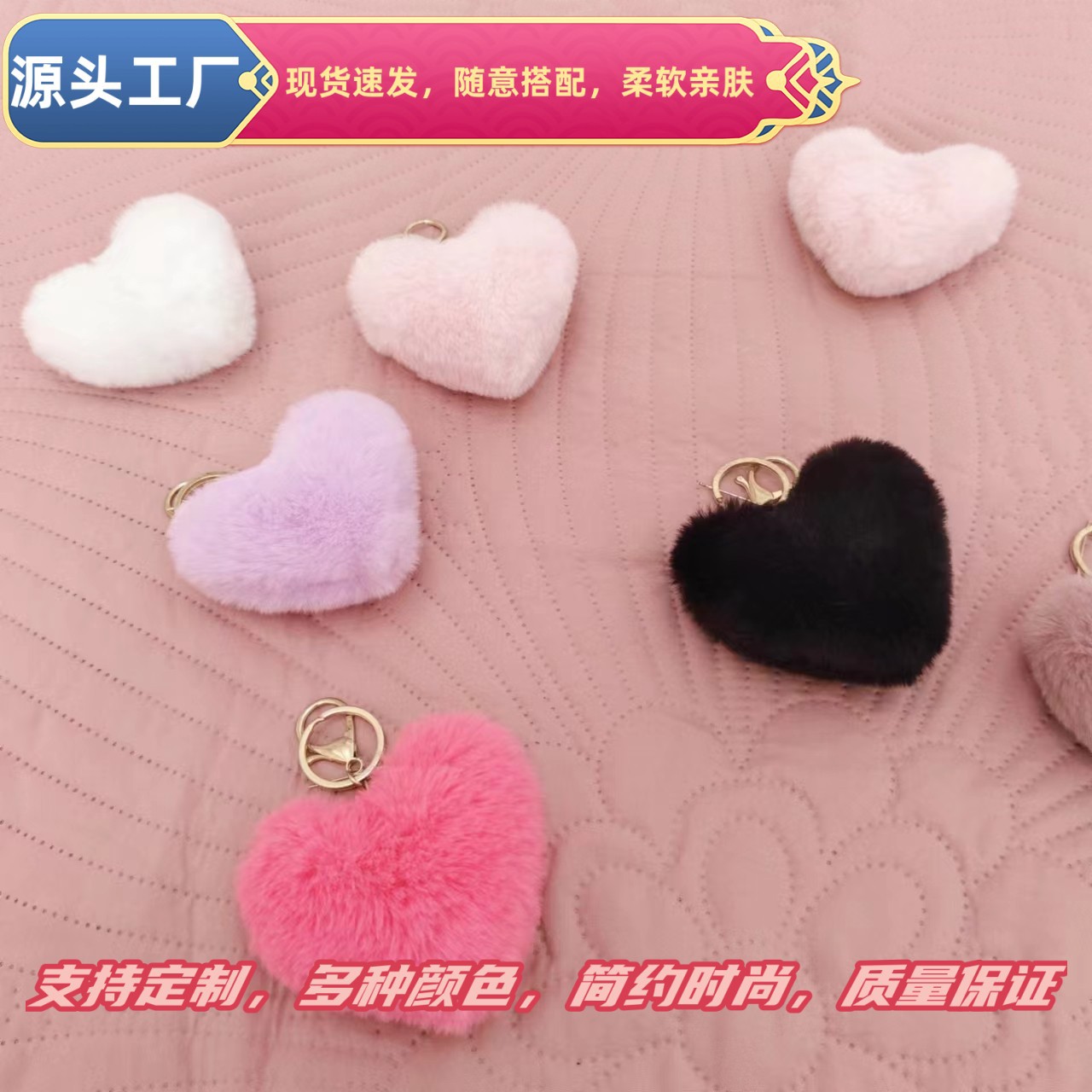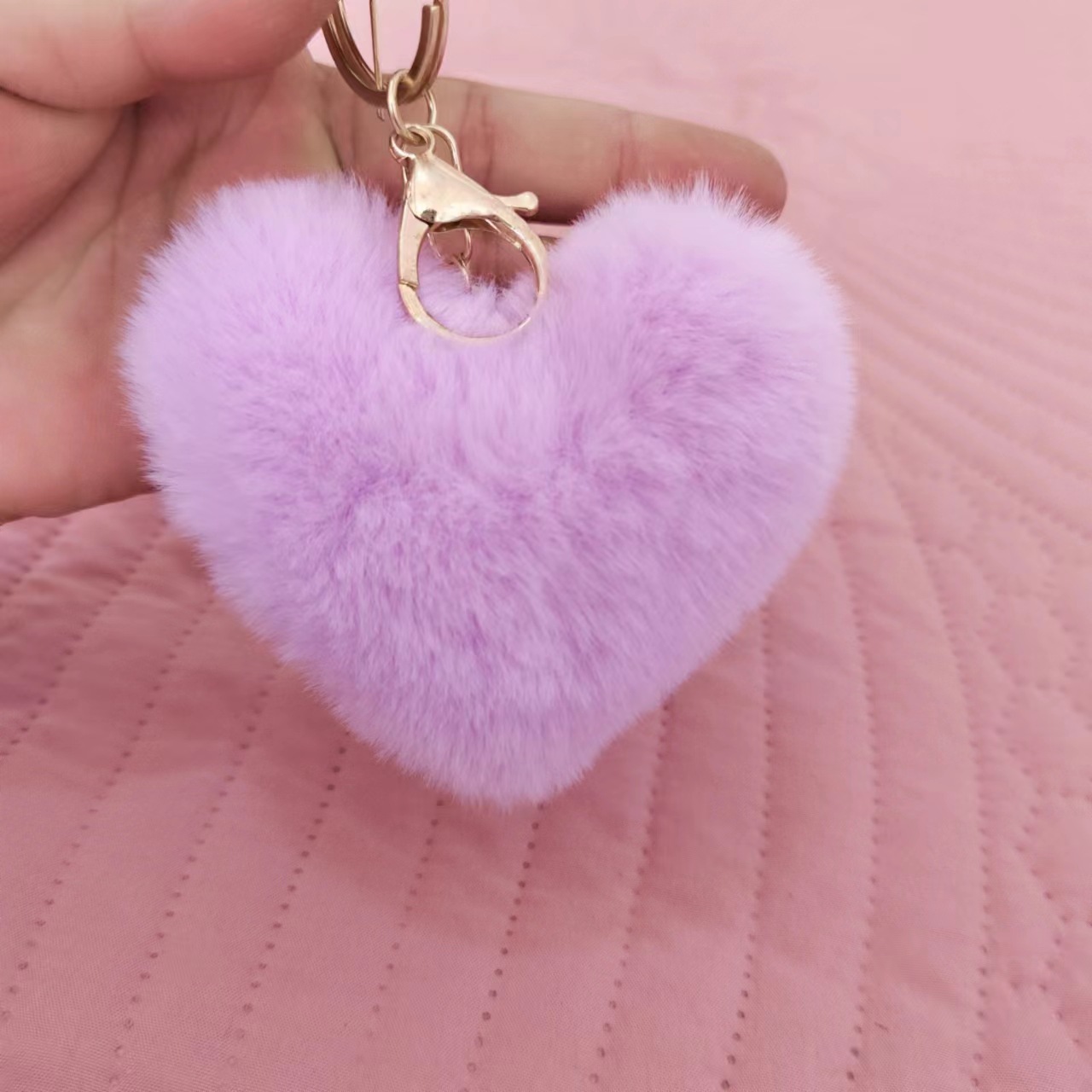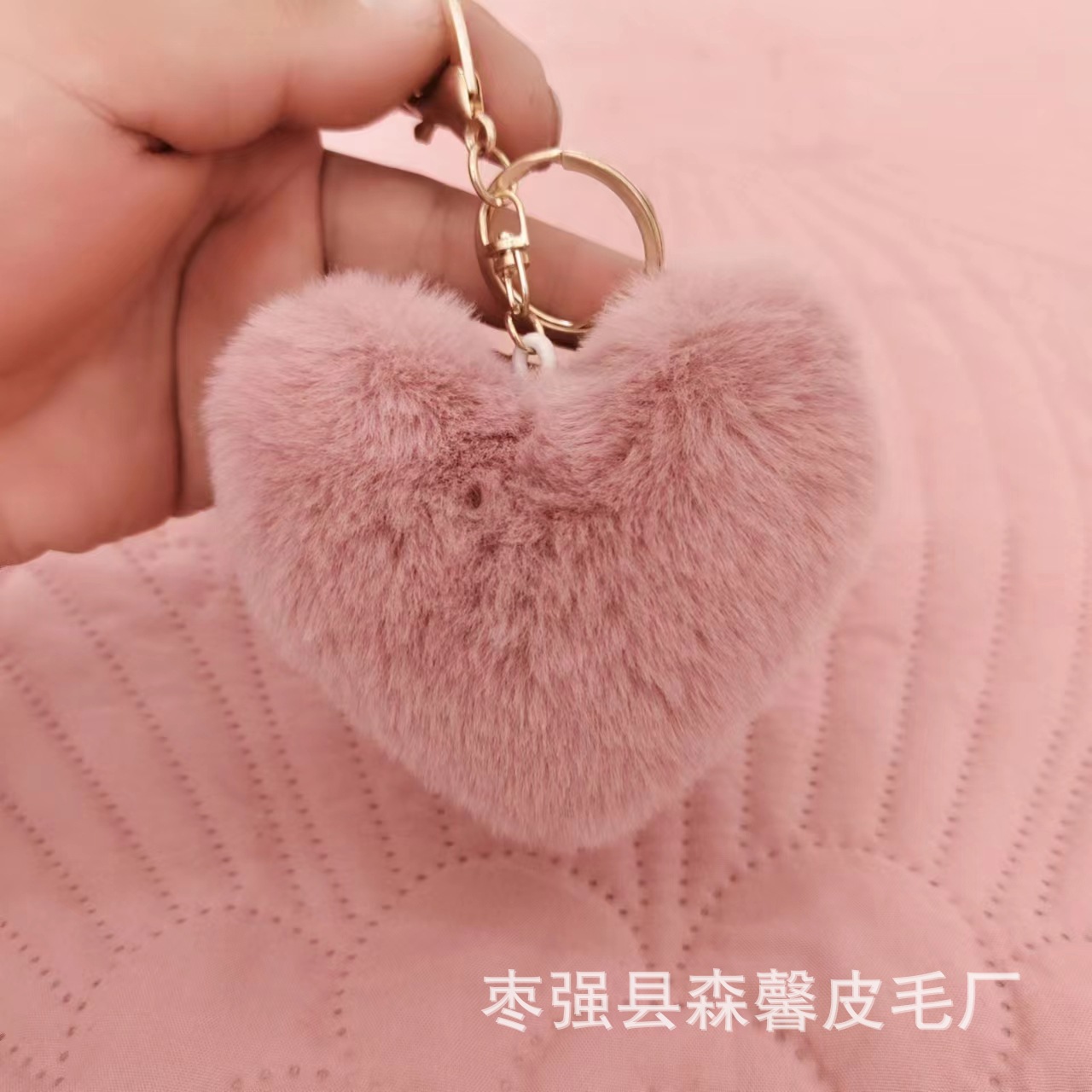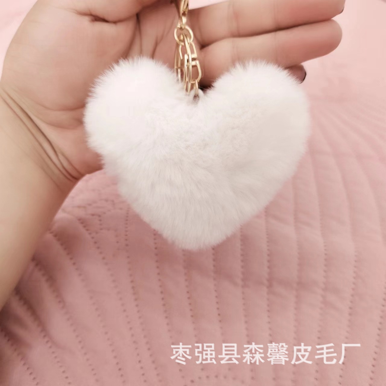 Rainbow Love Fur Ball Keychain Peach Heart Plush Suitcase Ornaments Imitation Rex Rabbit Couple Heart Pendant Factory Wholesale