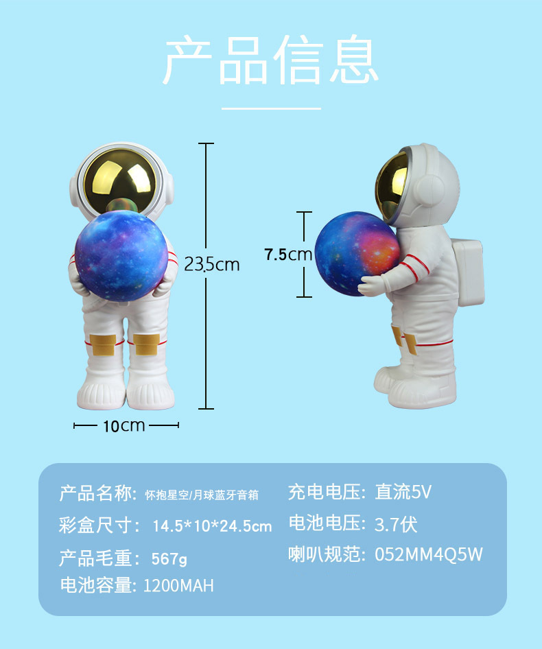 spaceman astronaut night sky bluetooth speaker dream starry sky audio subwoofer night light decoration creative gift 中文版