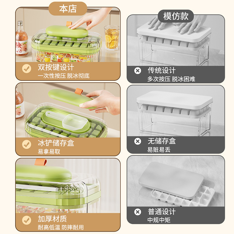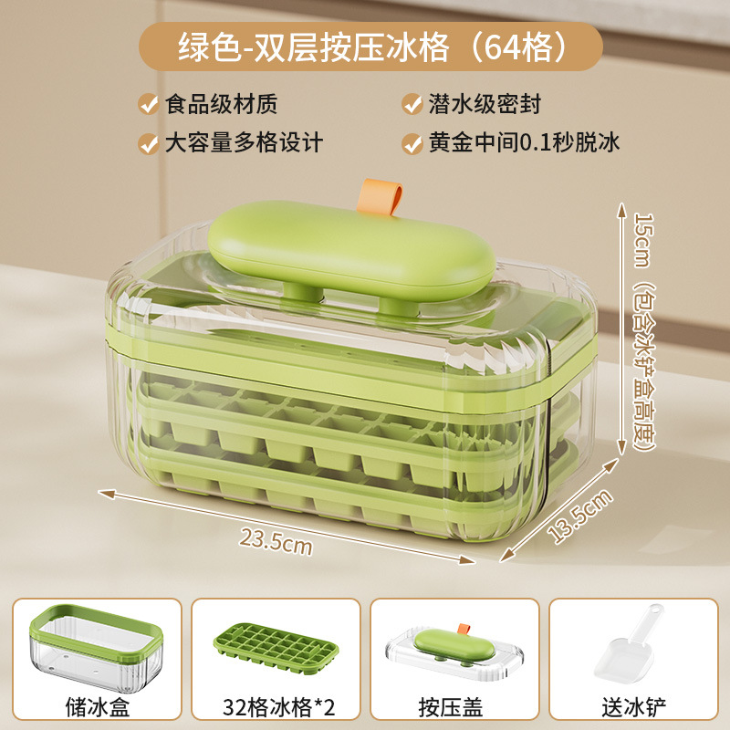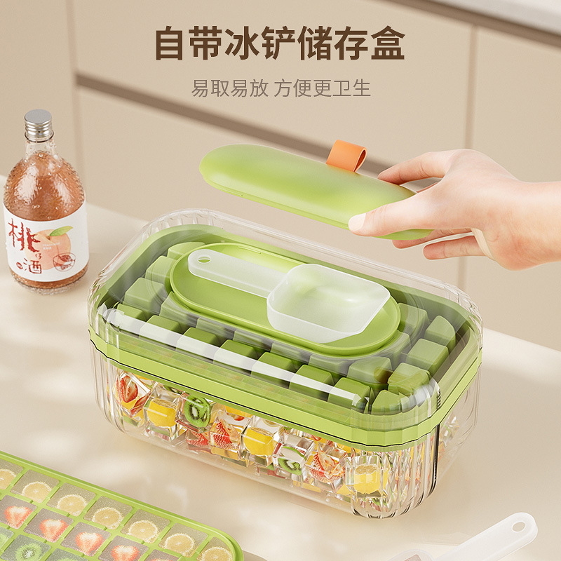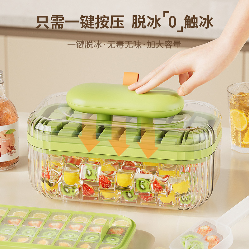 New design ice cube mold with lid, food-grade, press-and-freeze ice cube mold for home use, makes ice cubes in the refrigerator