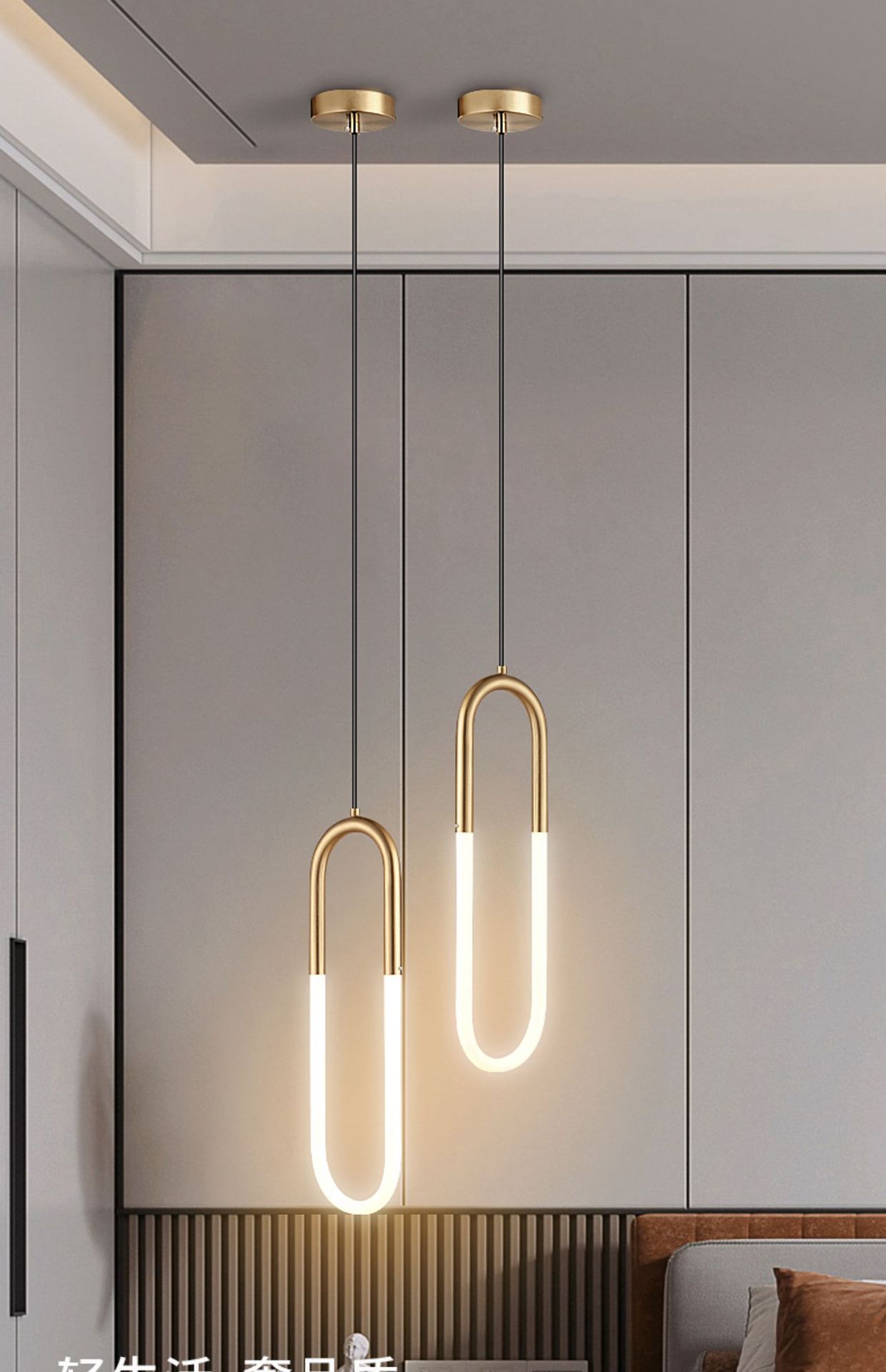 nordic minimalism u-shaped bedroom bedside chandelier light luxury long line modern minimalist lamp in the living room background wall suspension wire 中文版
