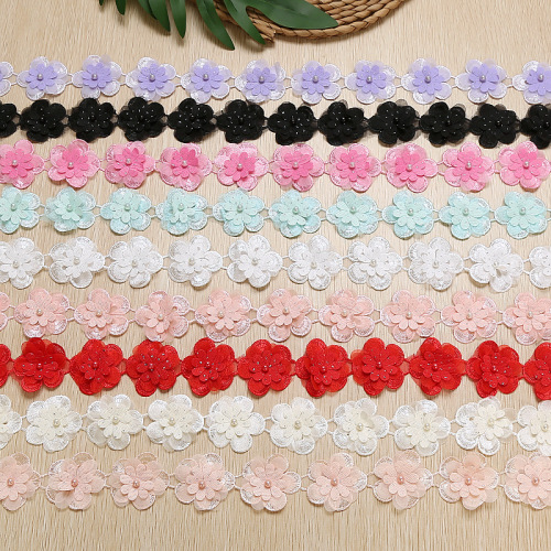Name Multi-colored beaded organza flowers, three-layer organza lace