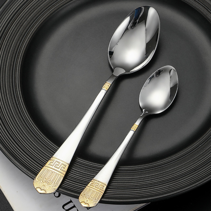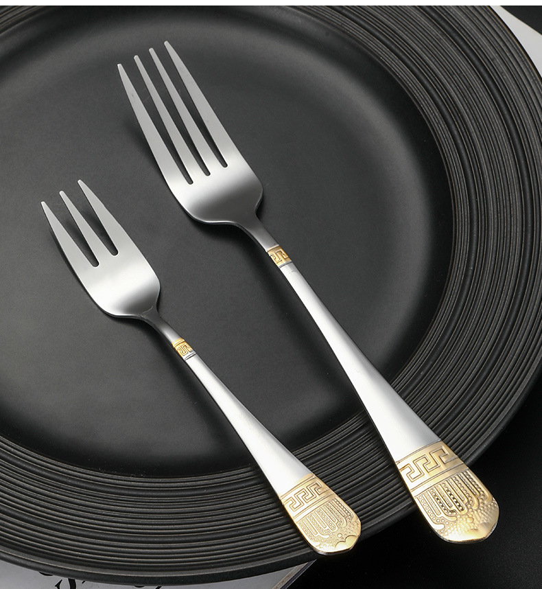 Hongli Stainless Steel Crown Gold-Pted Steak Western Food Knife, Fork and Spoon Suit Pattern Knife, Fork and Spoon Four-Piece Set 中文版