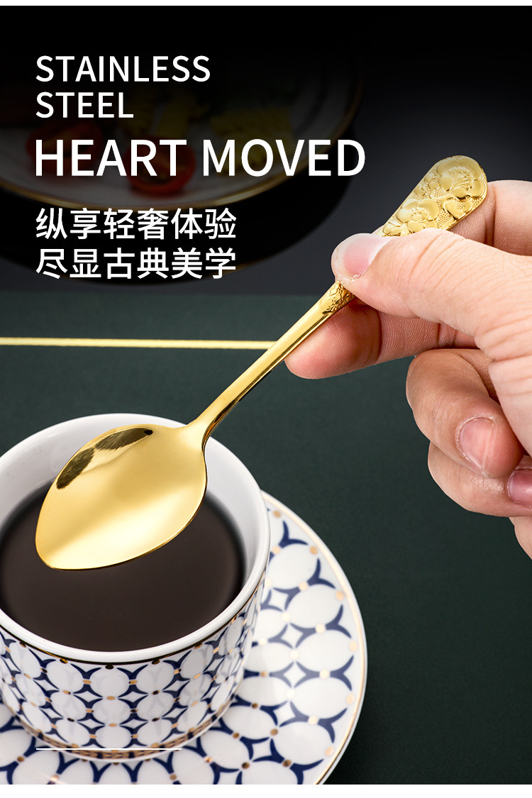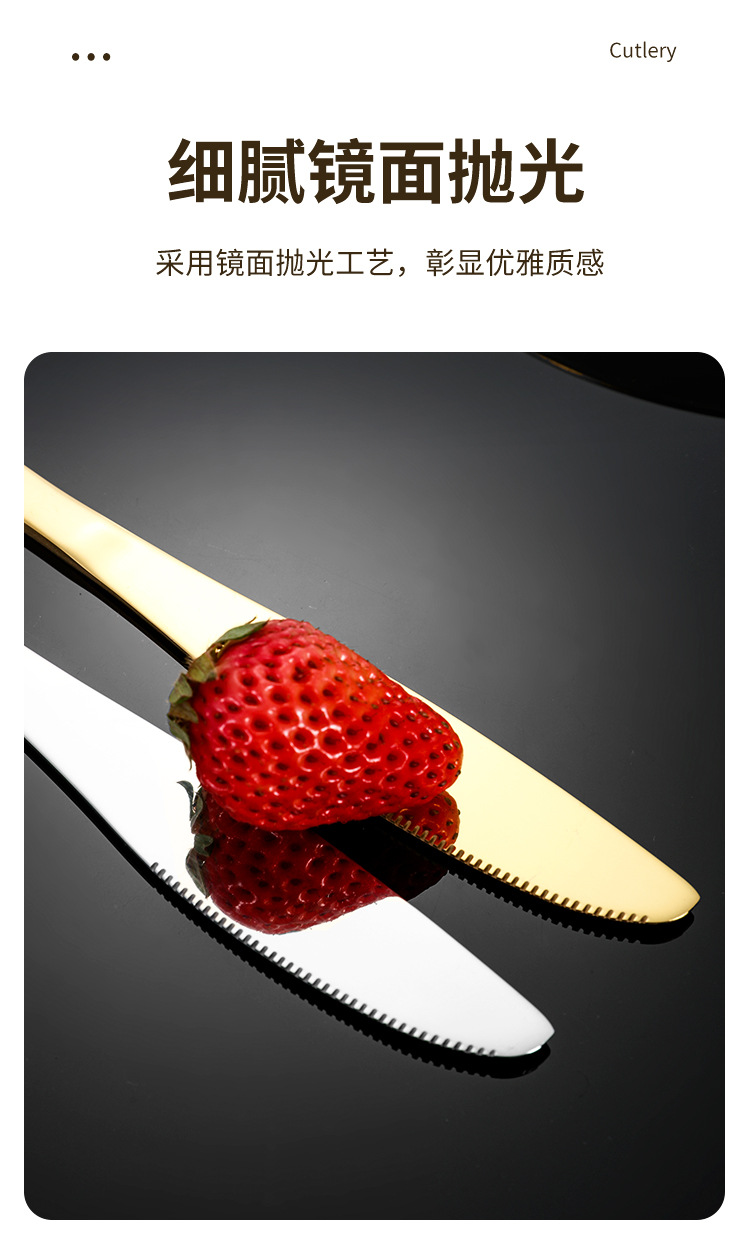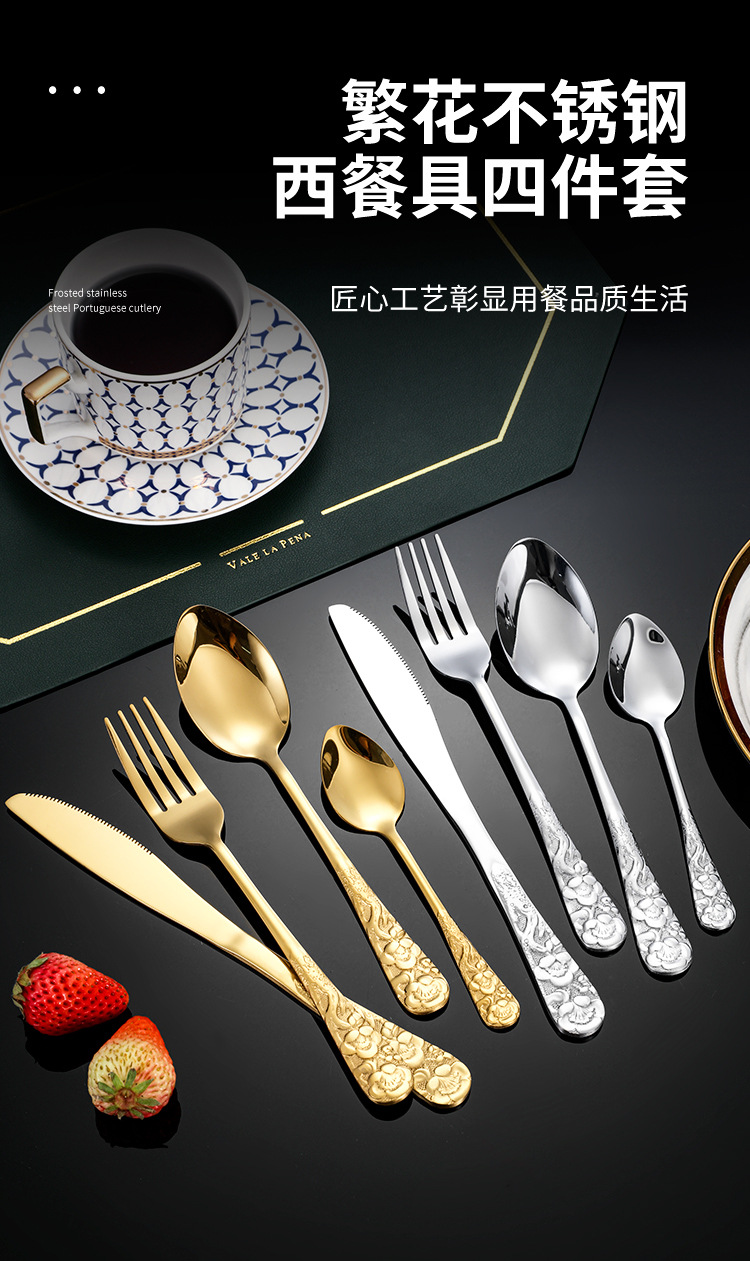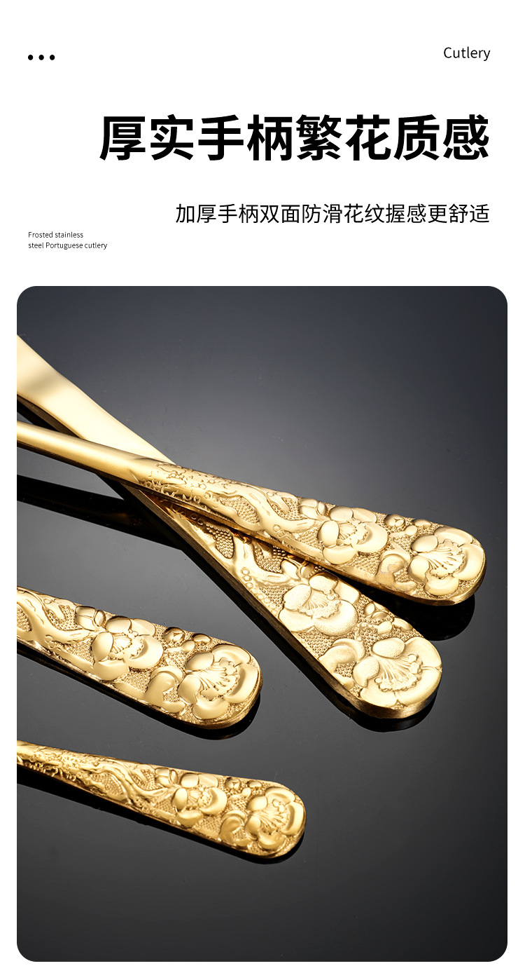 Hongli Pattern 1010 Golden Stainless Steel Western Tableware Hotel Steak Knife and Fork Spoon Retro 4 PCs Set 中文版