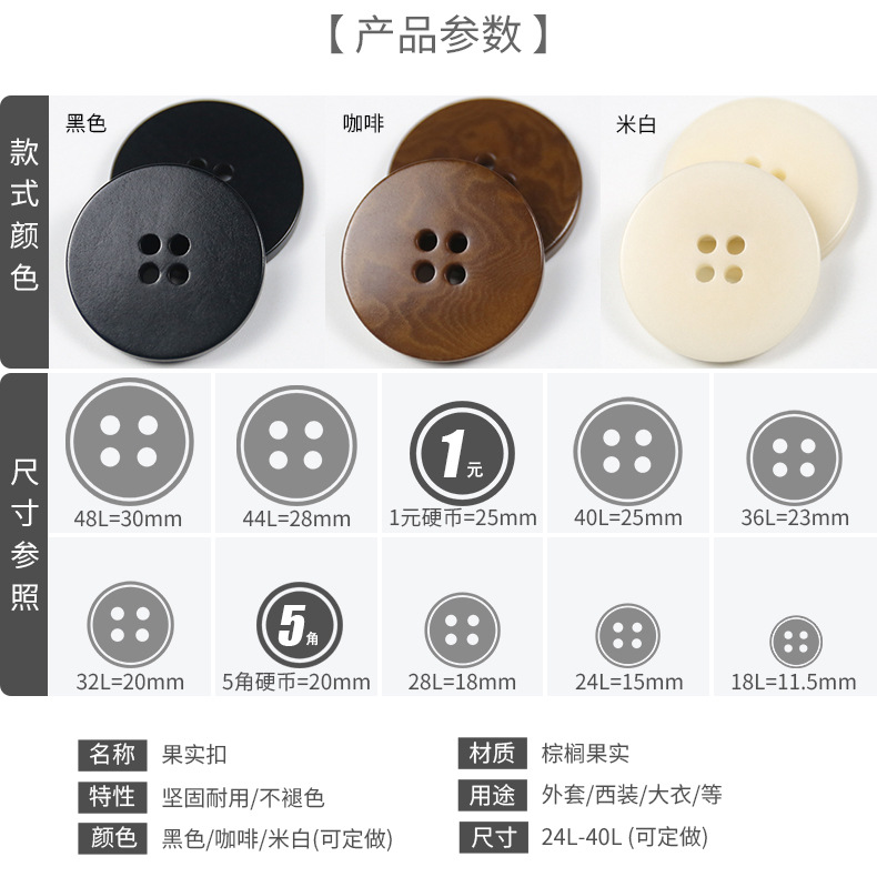 four-eye round sweater button coat button overcoat and trench coat button double flat fruit button high-end suit button