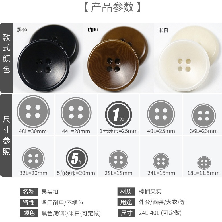 natural fruit buckle high-end windbreaker button suit buttons exquisite lettering coat accessories wholesale in stock coat buttons