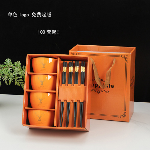 orange four bowls and chopsticks (20 sets/box)