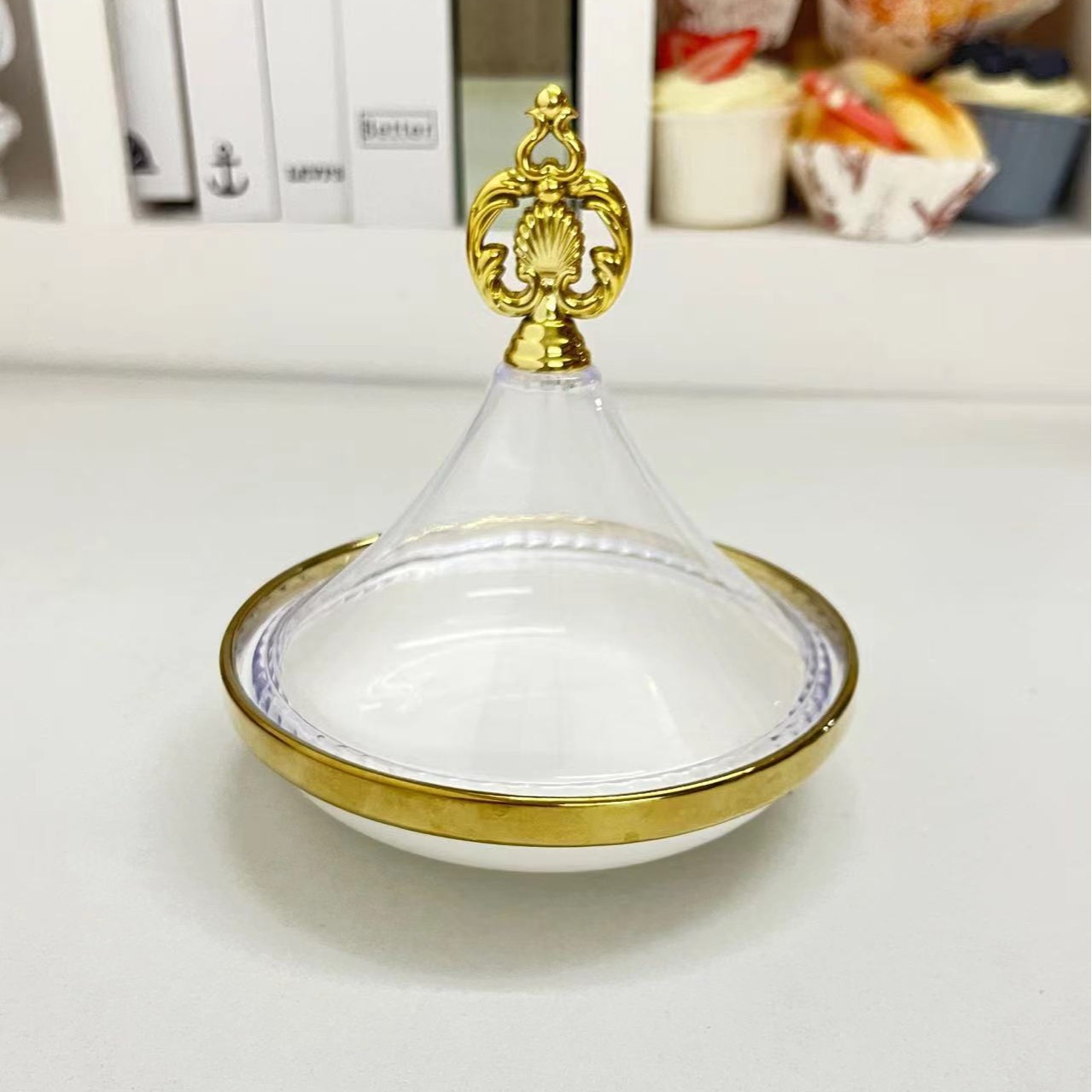 entry luxury home decoration and ornament multi-grid fruit plate dessert printed tape tureen european gold ceramic cup plate 9