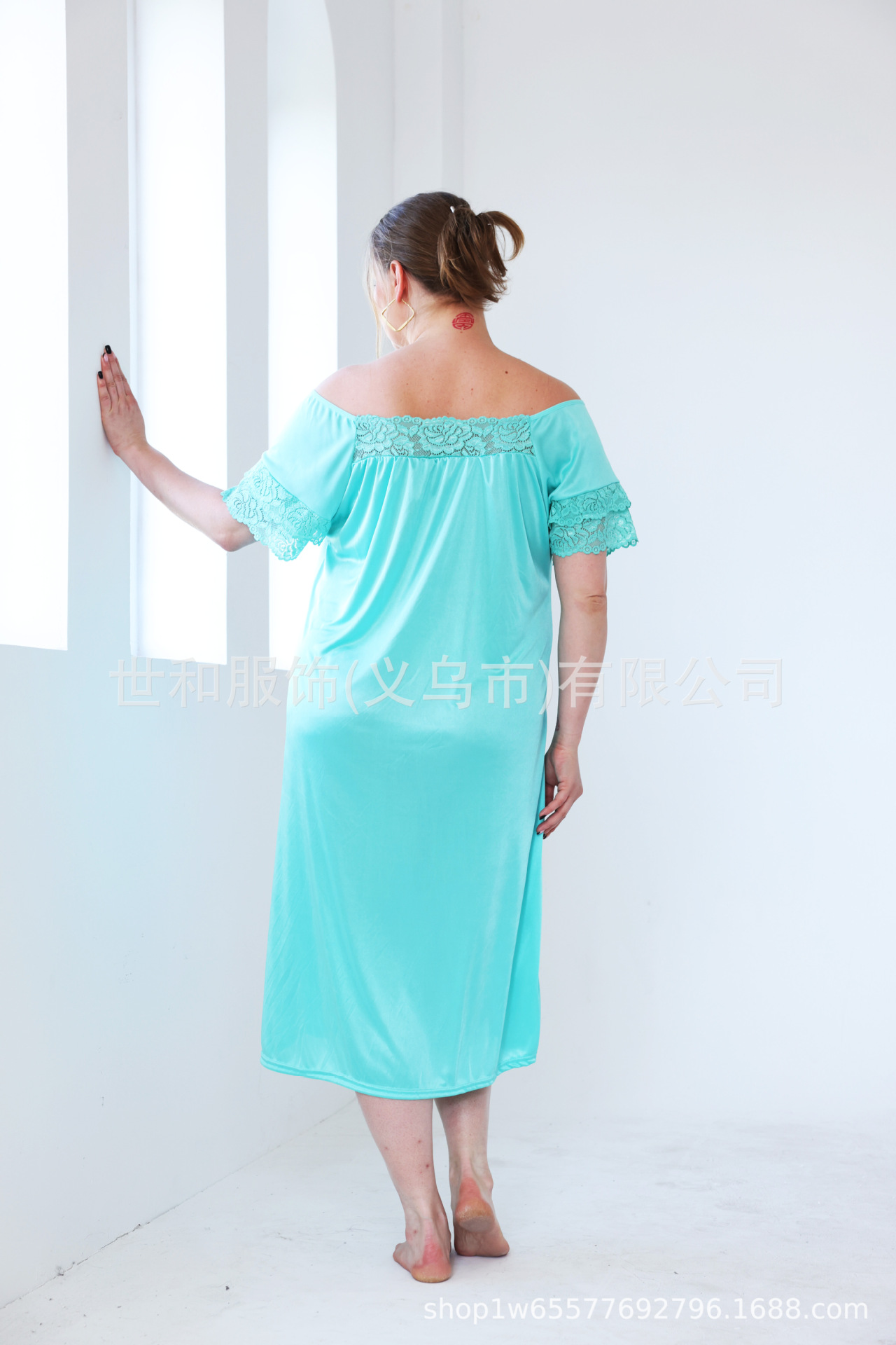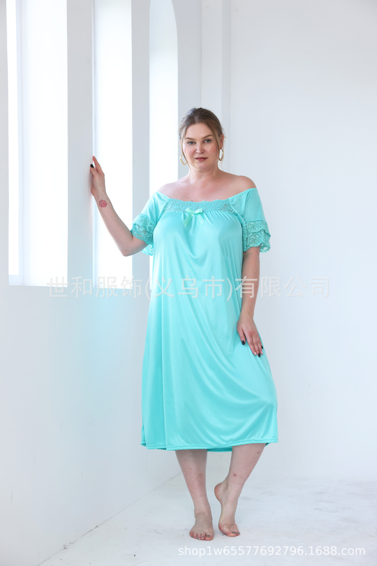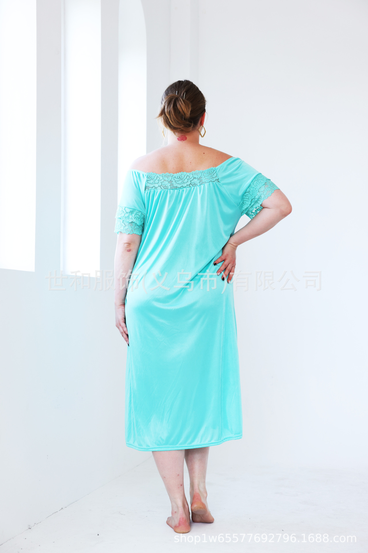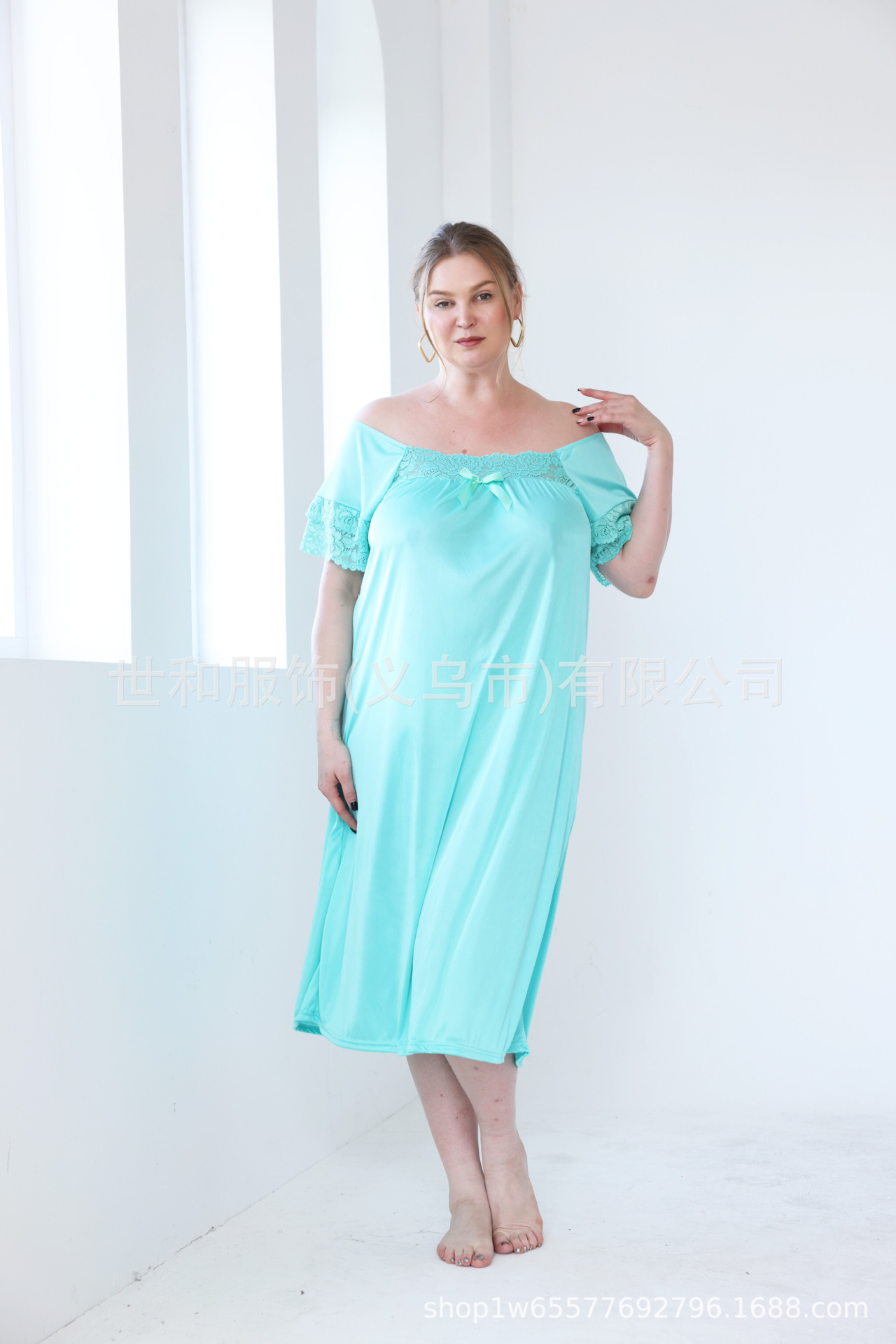 2023 spring and summer foreign trade new lace stitching nightdress large size women's dress 中文版