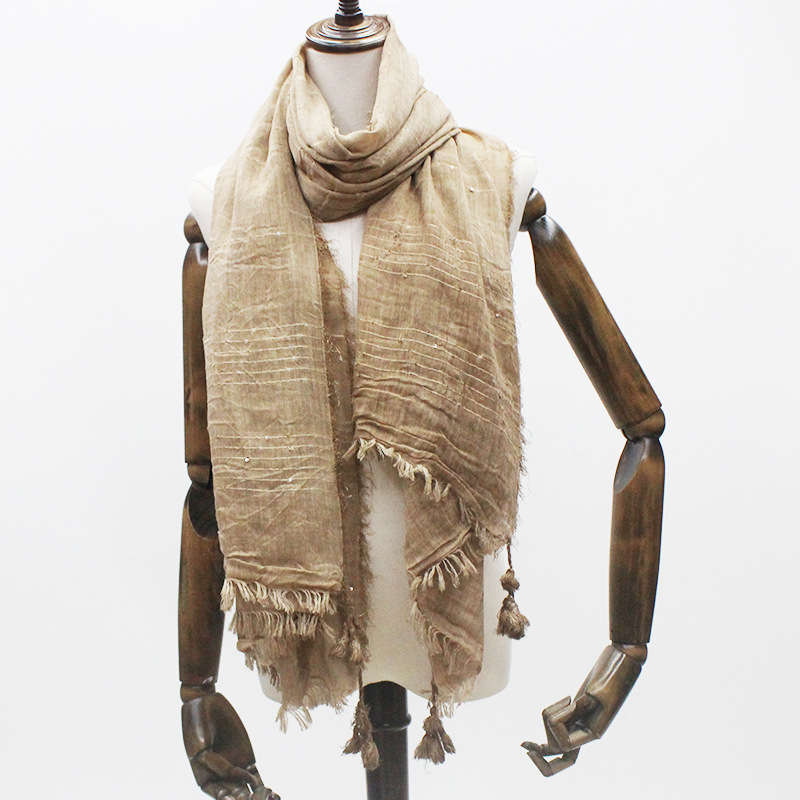 thin women's scarf autumn and winter shawl dual-use long spring and autumn artistic ethnic style tassel solid color silk scarf 中文版