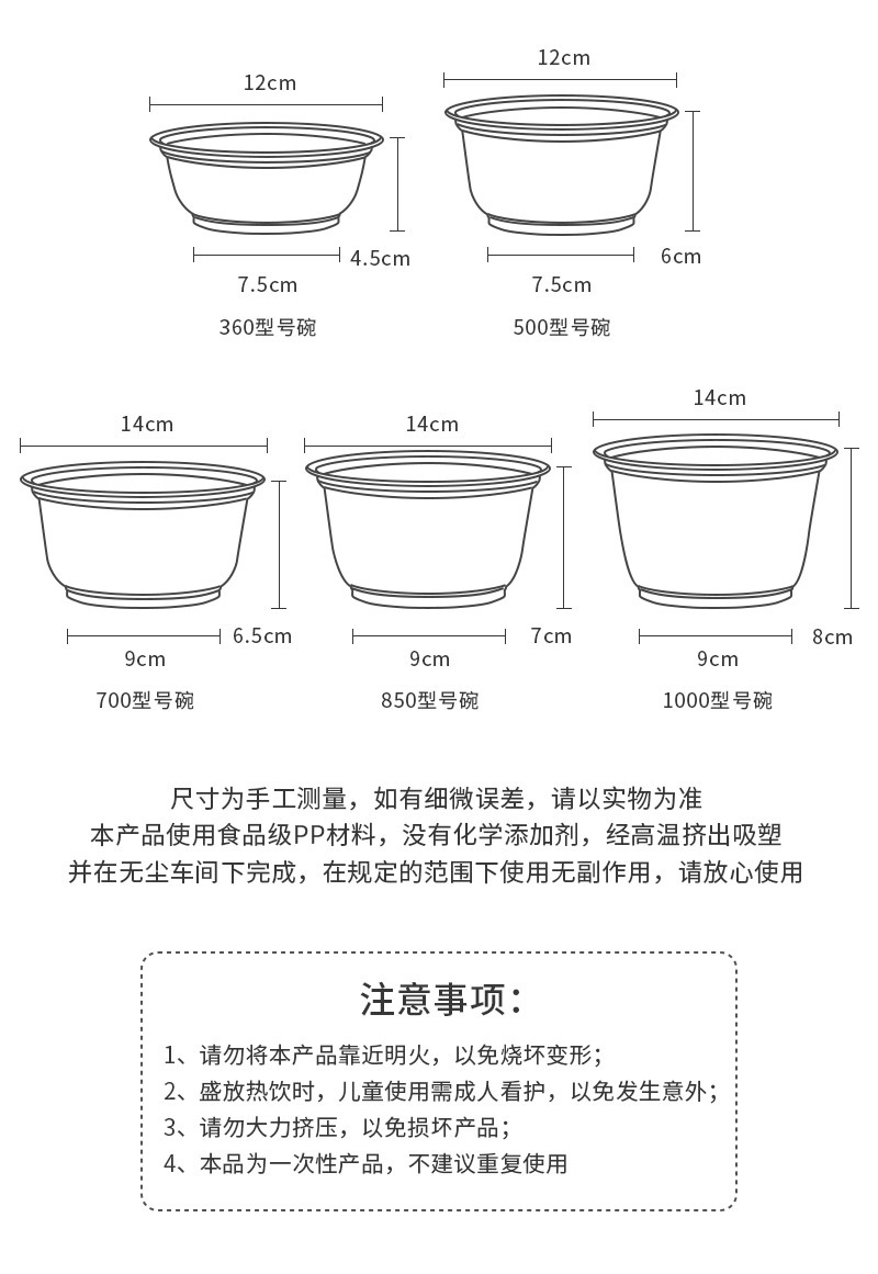 700型加厚碗100只+盖子100个