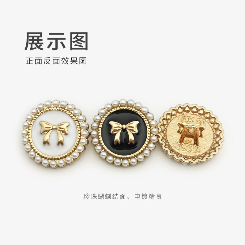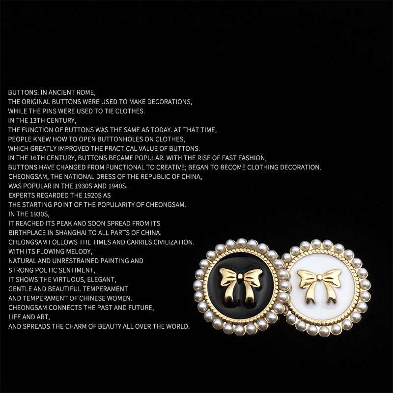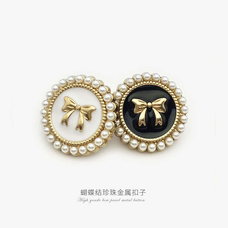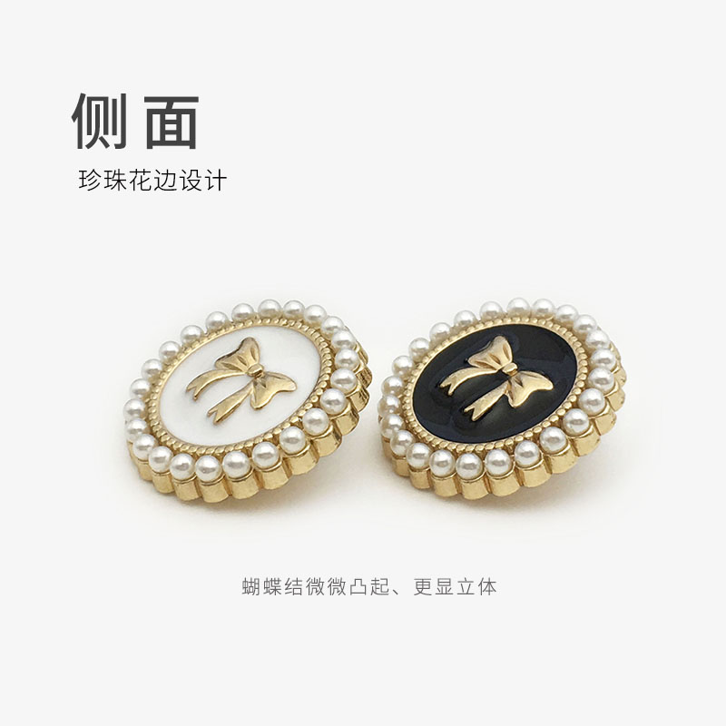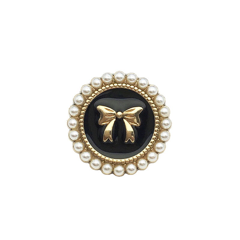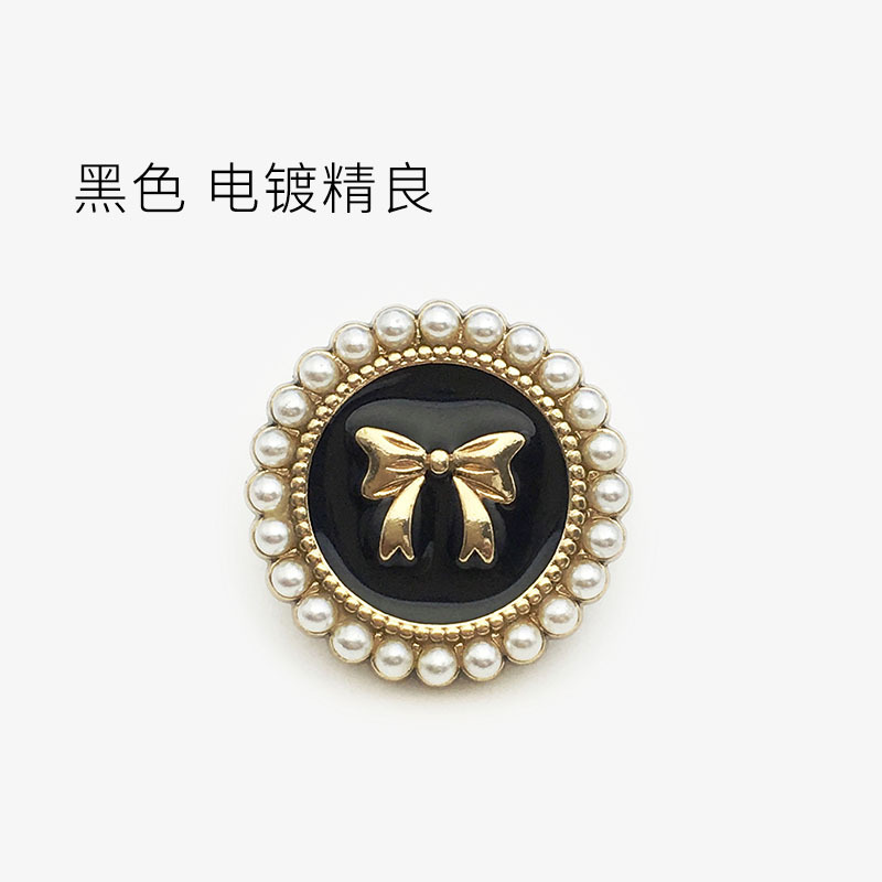top women's suit buckle black round metal button sweater coat decoration button pearl bow button