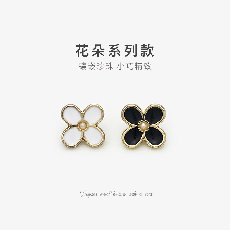 metal all-match women's shirt chiffon knitted cardigan four-leaf clover buttons high-grade pearl flower black and white button
