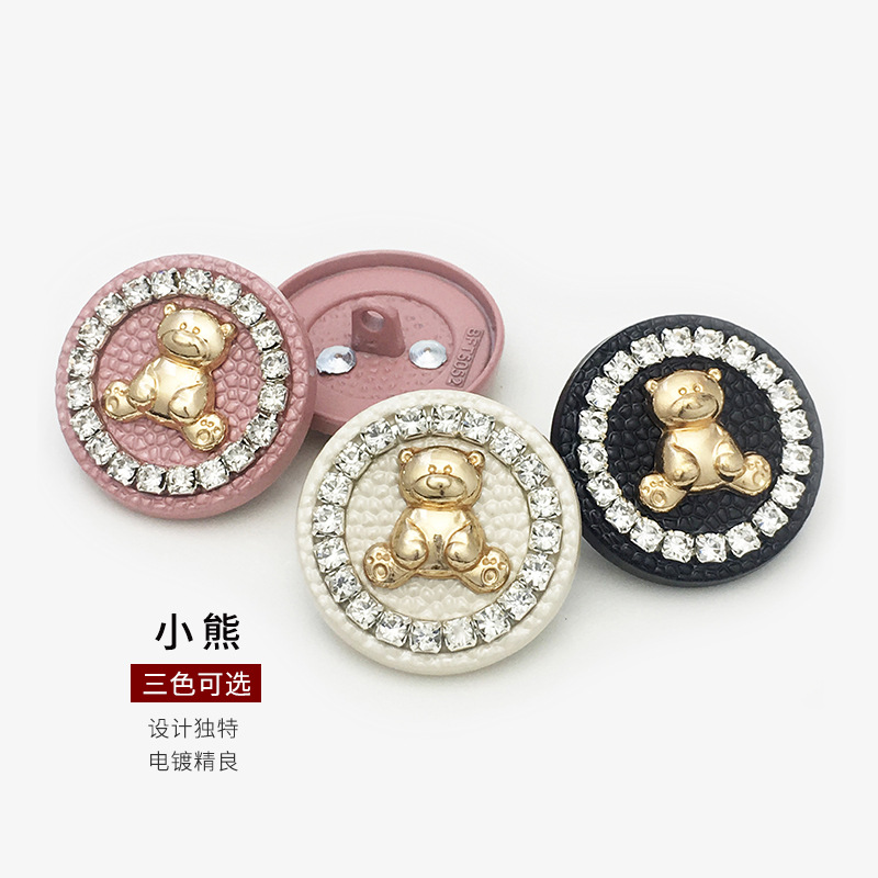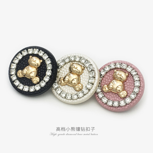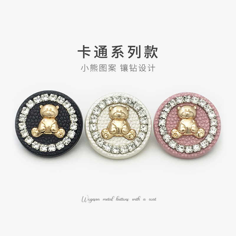 cashmere overcoat and trench coat sweater little bear cartoon decorative buttons high-end rhinestone-encrusted pink button round metal button
