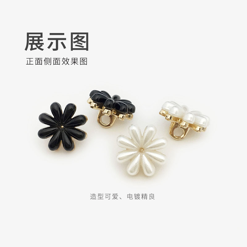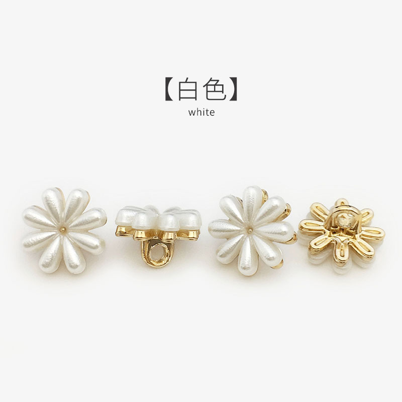 white coat sweater cardigan pearl decorative buckle high-grade flower-shaped hand-stitched button little daisy flower metal button