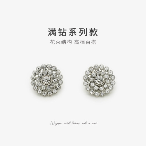accessories women's top knitted coat dress buttons classic full diamond silver metallic decorative button coat buttons