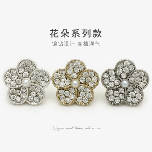 women's shirt knitted cardigan with diamond button coat suit button golden pearl diamond flower metal button