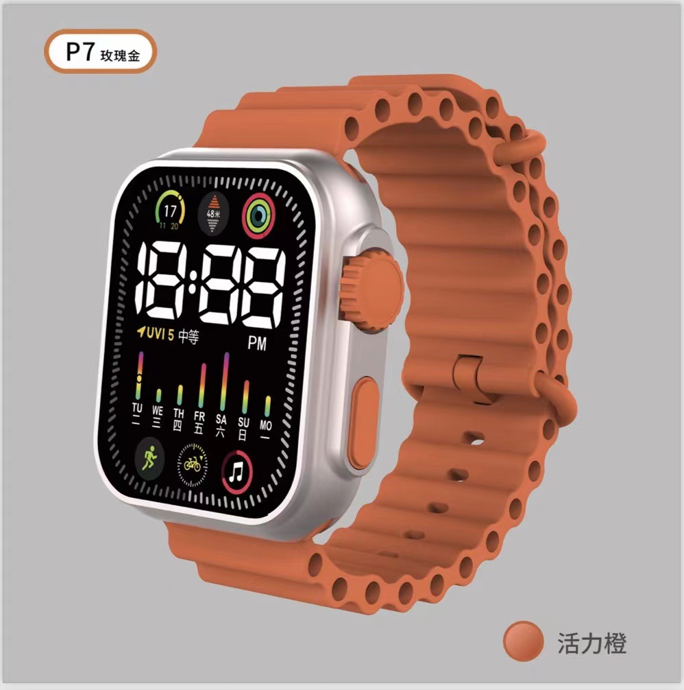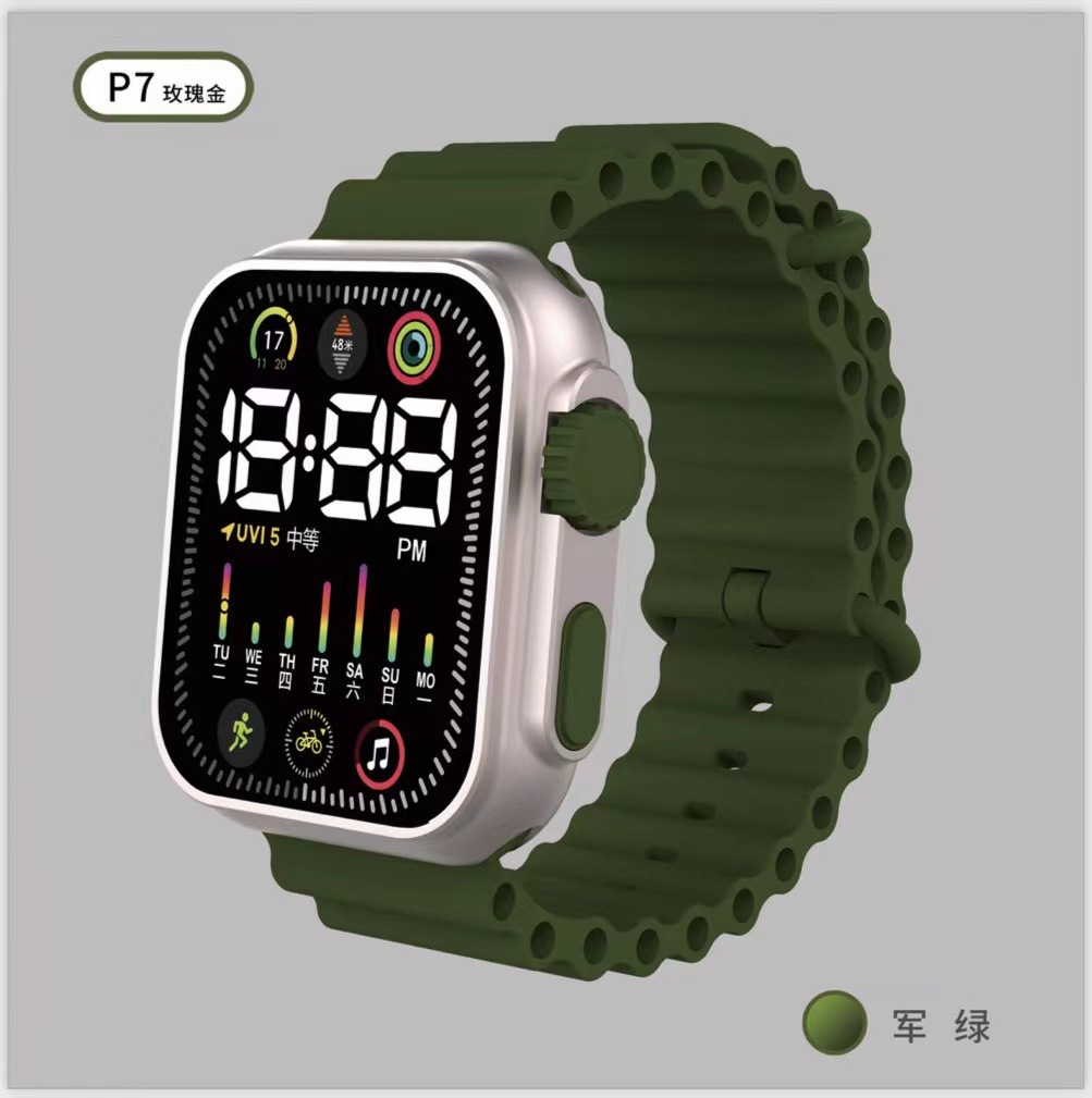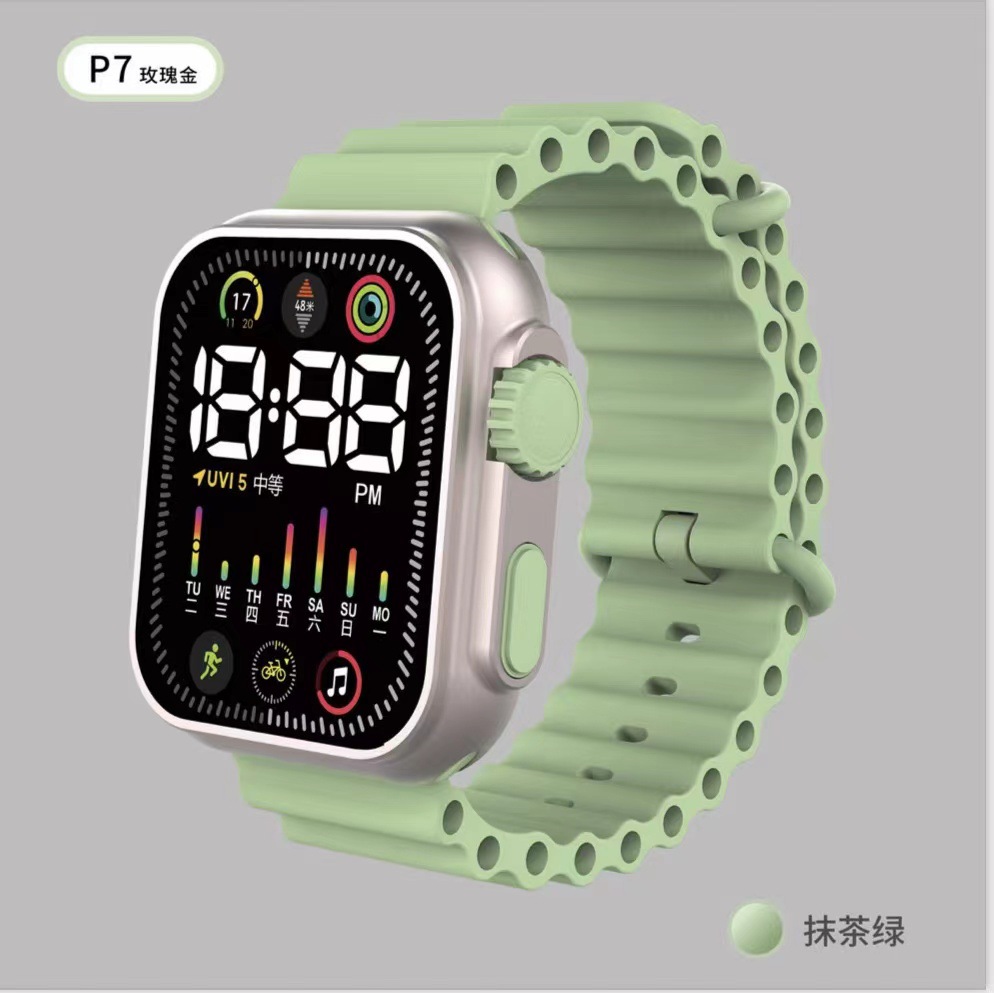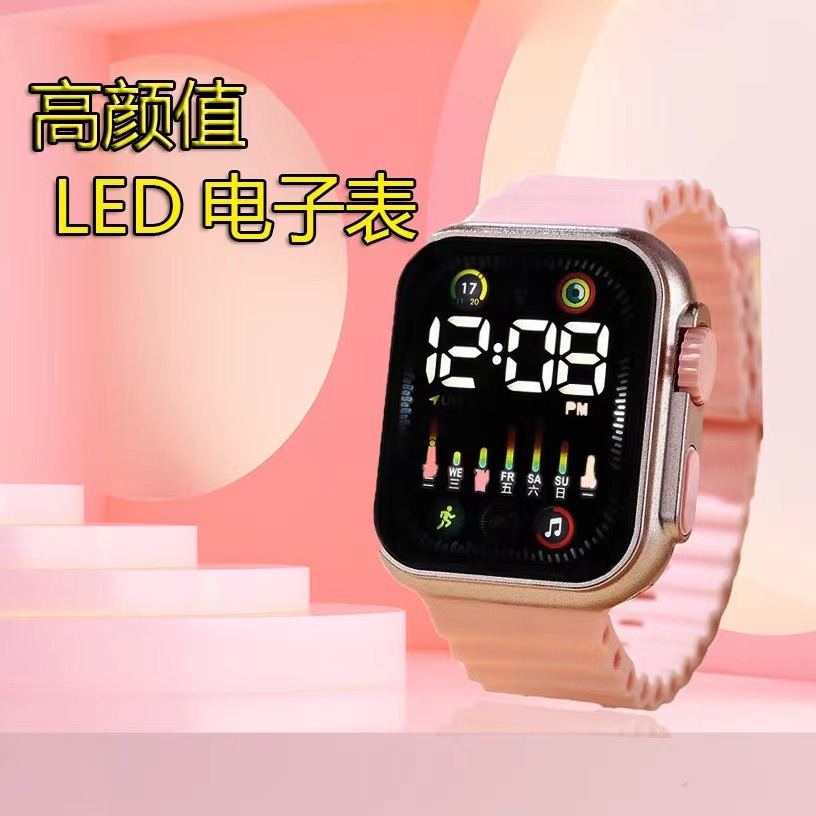 Exclusive for Cross-Border New Korean Style Led Student Electronic Watch Square Button Colored Lights Men and Women Couple Electronic Watch