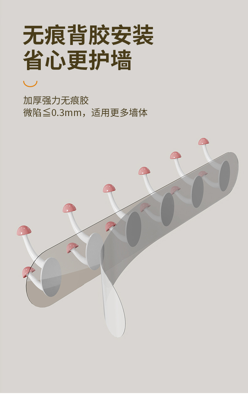Six-Row Musoom Hook Hook One Row Punch-Free Traceless Strength Cartoon Clothes Hook Kitchen Batoom 6 Multi Hook