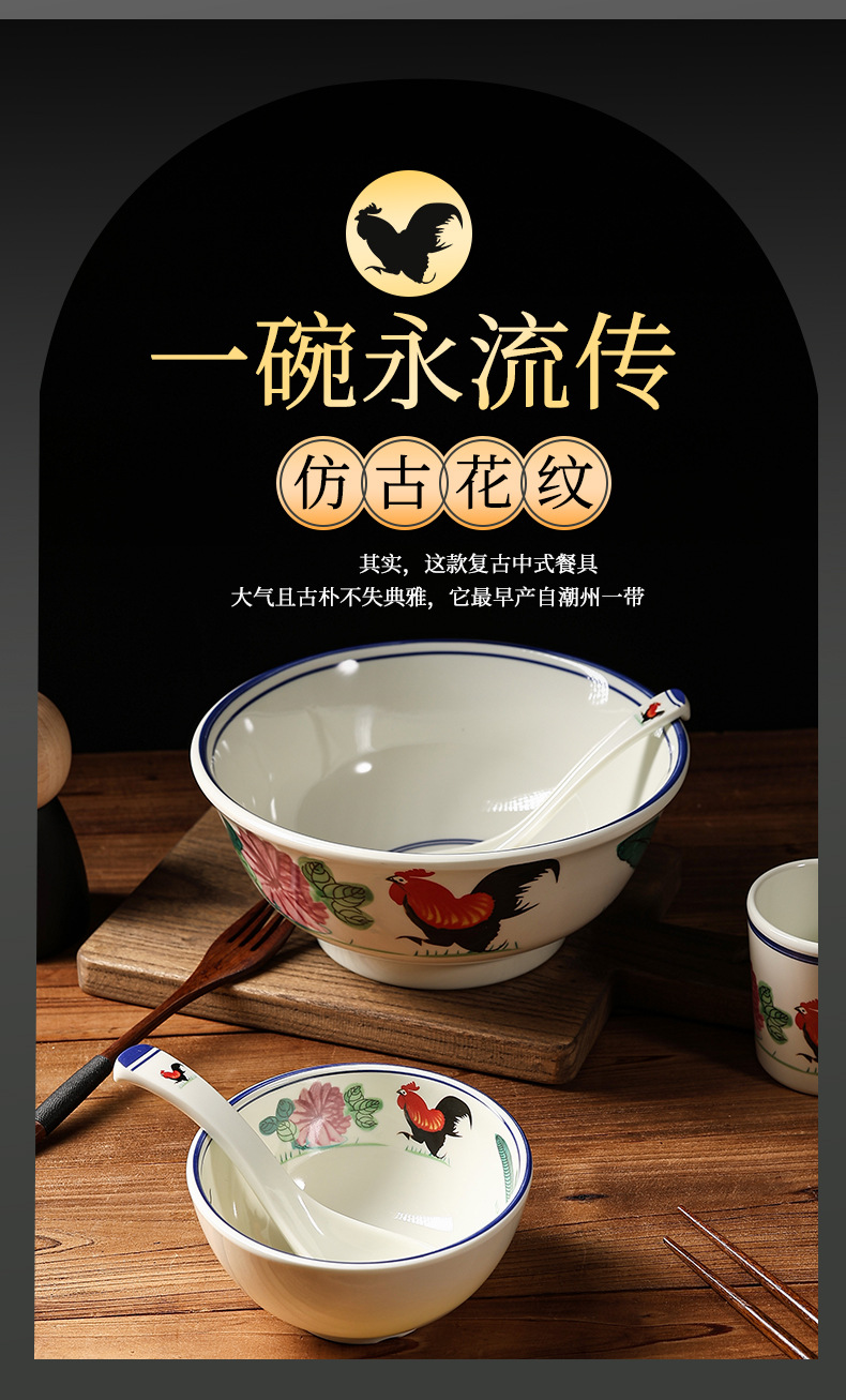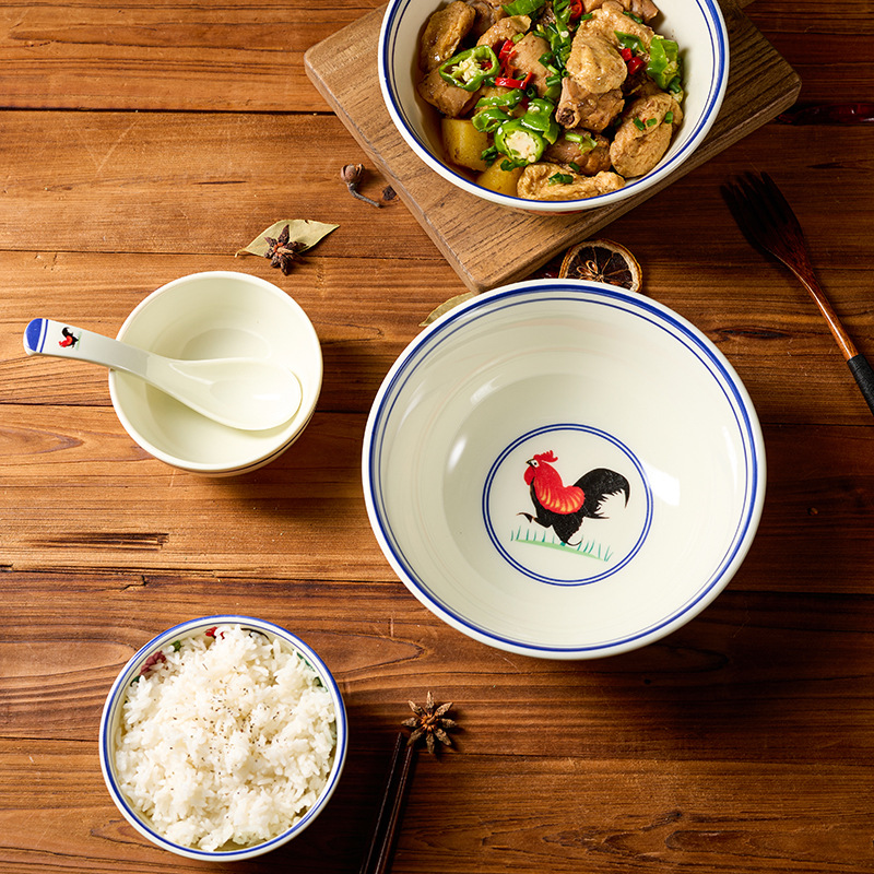 bowl with rooster commercial nostalgic melamine tableware pig's knuckle rice bowl melmac bowl high temperature resistant noodle bowl wholesale factory