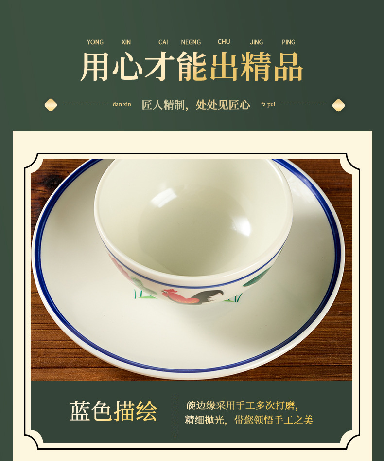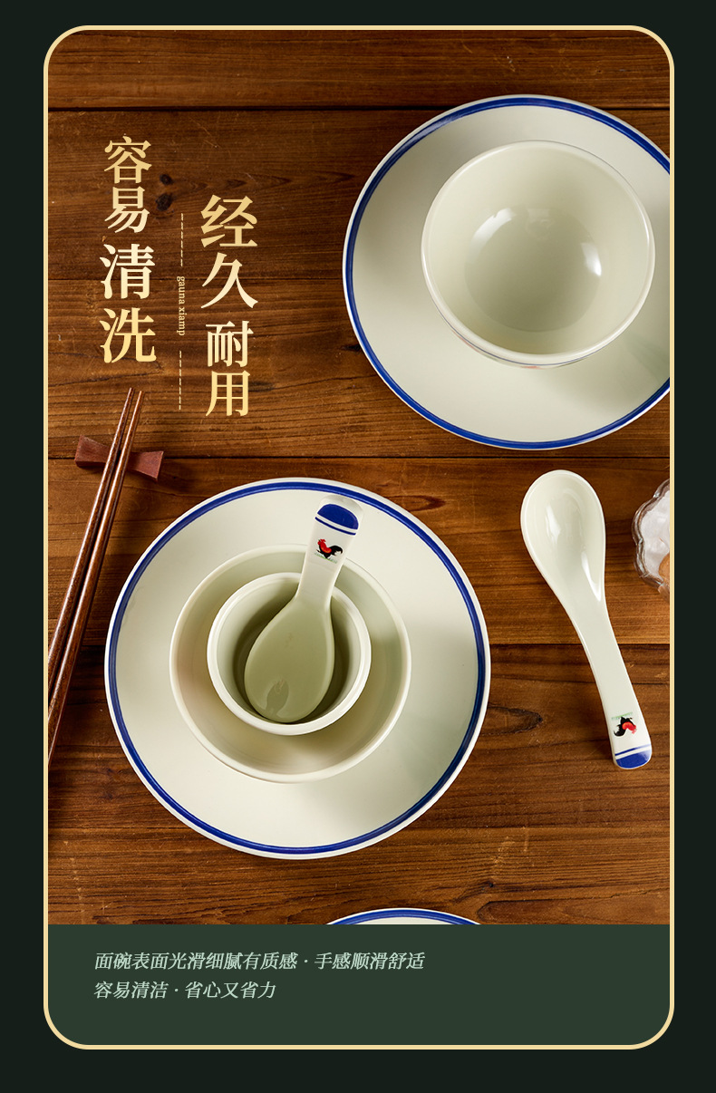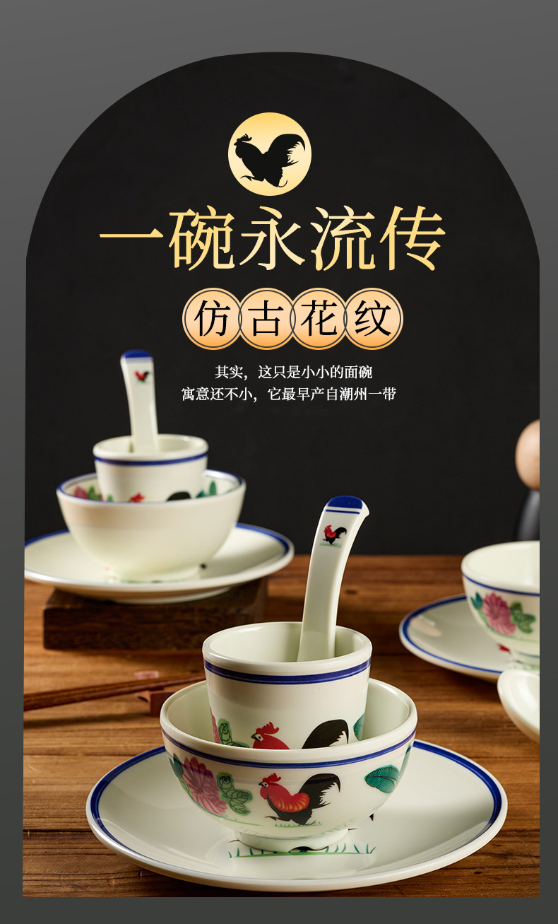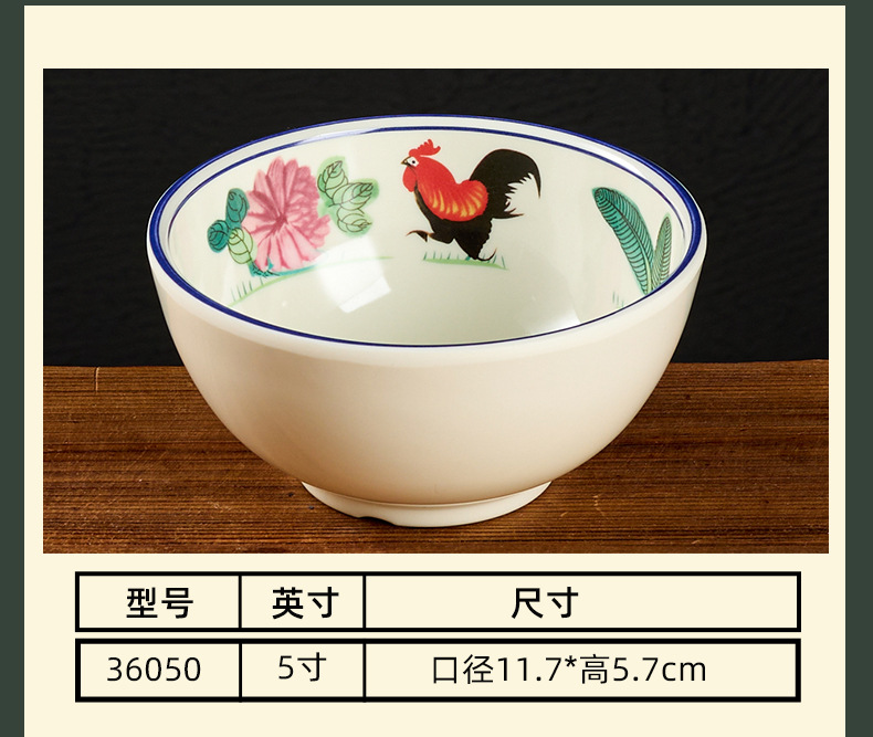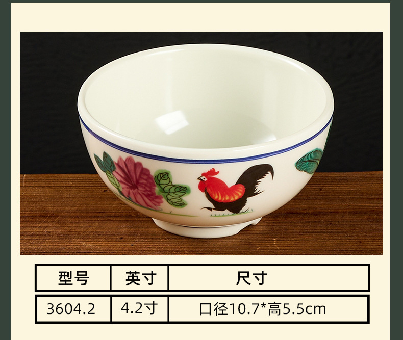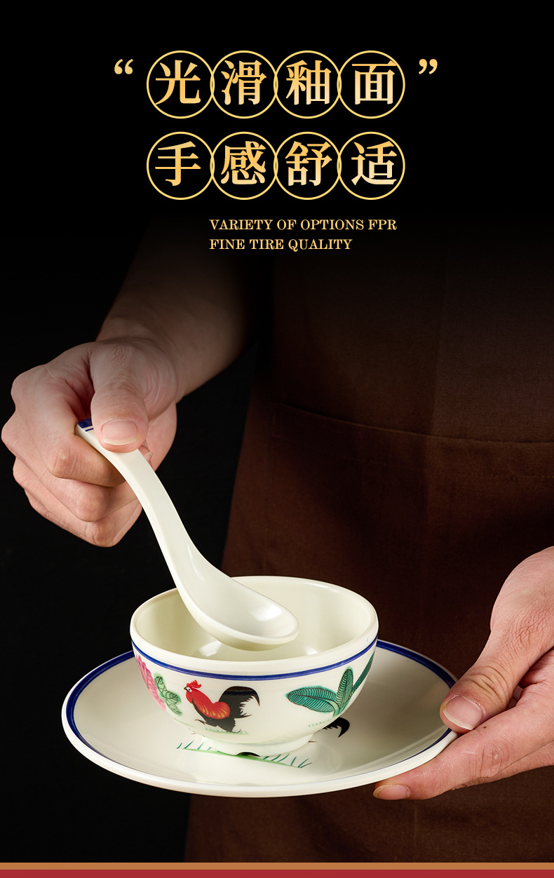 melamine tableware hotel commercial table display set chinese rooster spoon cup bowl dish set rice bowl imitation porcelain wholesale factory 中文版