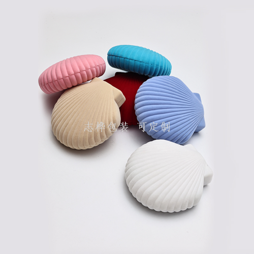 yiwu factory flocking necklace box shell style ear stud and ring necklace box pearl box 中文版