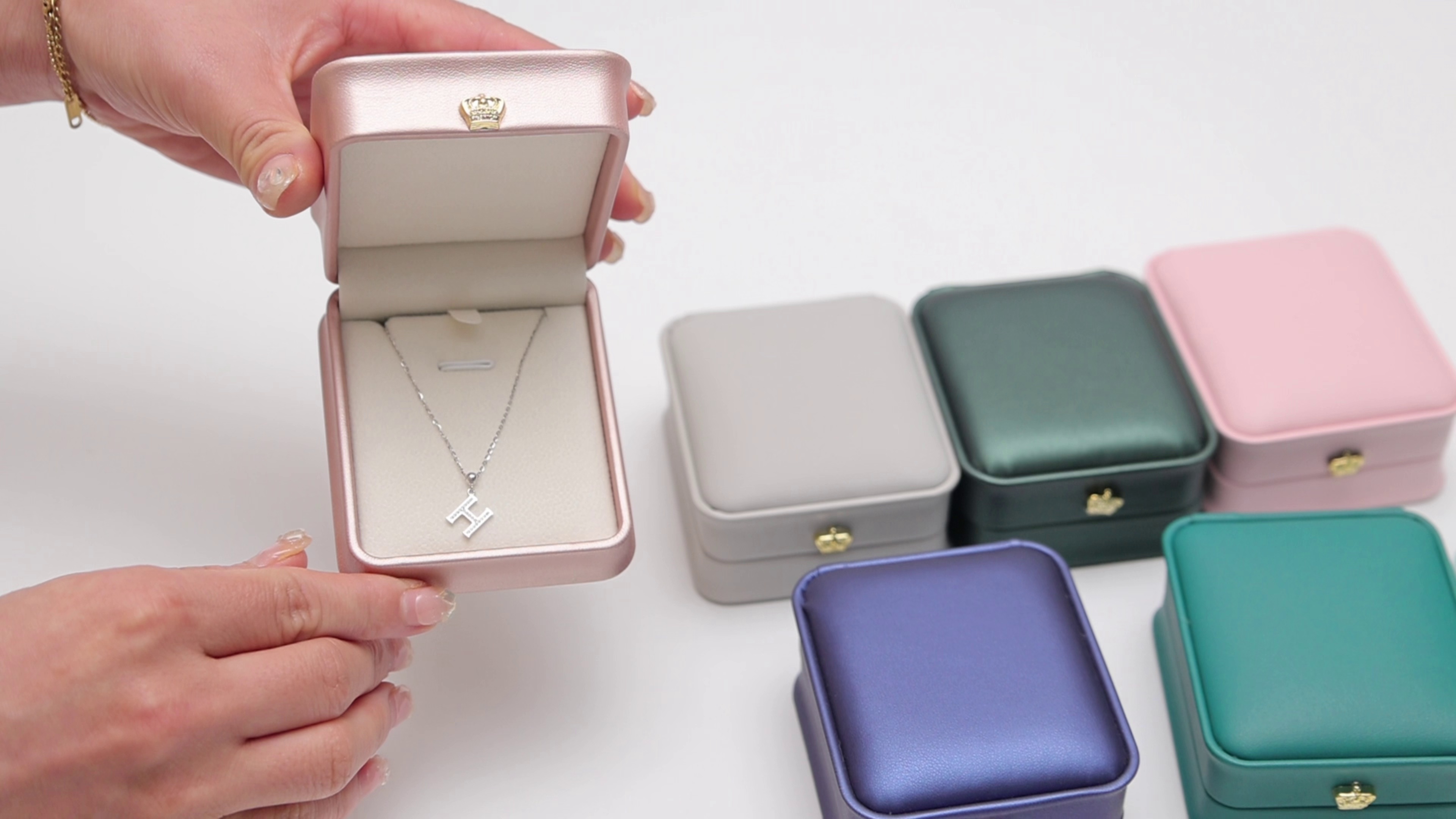 in stock leather box ring box high-end ring box stud earrings box crown accessories 中文版