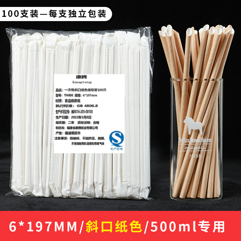 [medium style] 100 pieces of oblique mouth natural color (suitable for small particle drinks) individually packaged
