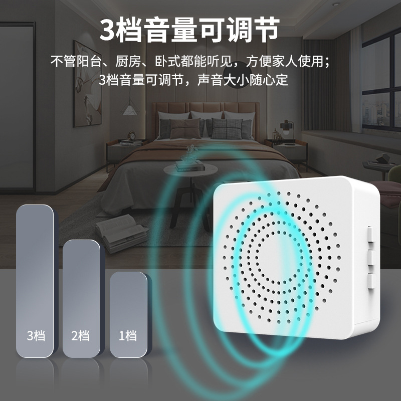 Long-distance wireless remote doorbell can pass through walls and iron doors, each button can set independent tracks to distinguish the front and back doors; we are the original production factory with large quantities and competitive prices, fast delivery cycle; small batch orders are shipped the same day, and 3 to 5K orders are shipped within 10 to 15 days. We can customize the functions according to customer needs!