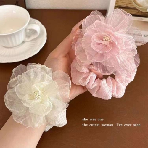mori style organza camellia large intestine hair band female korean temperament headband does not hurt hair low ponytail hair string headdress
