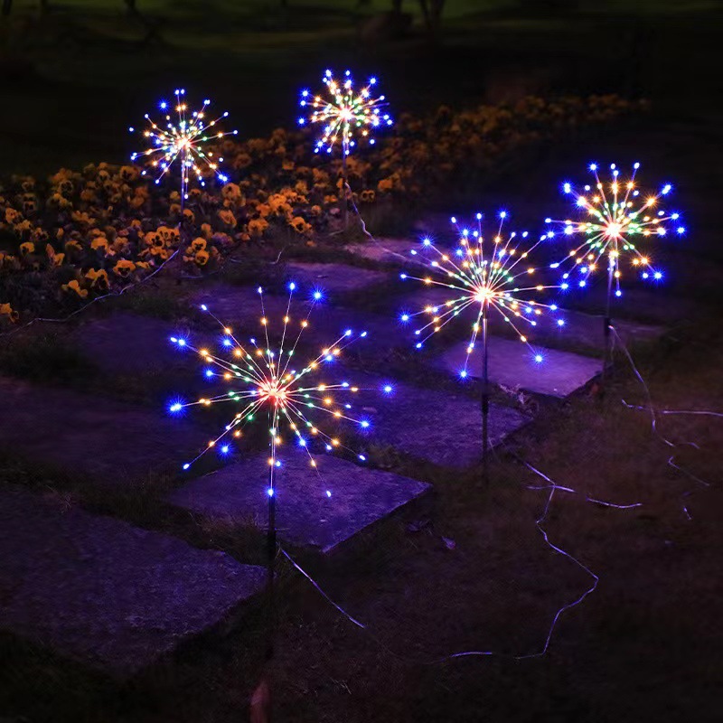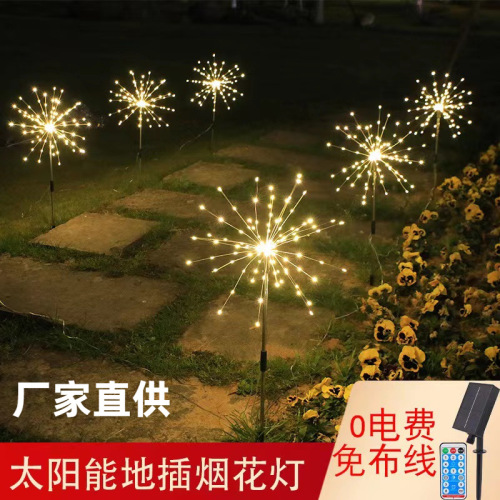 factory direct supply new led solar fireworks lamp remote control floor outlet lawn lamp one for four outdoor decoration wholesale 中文版
