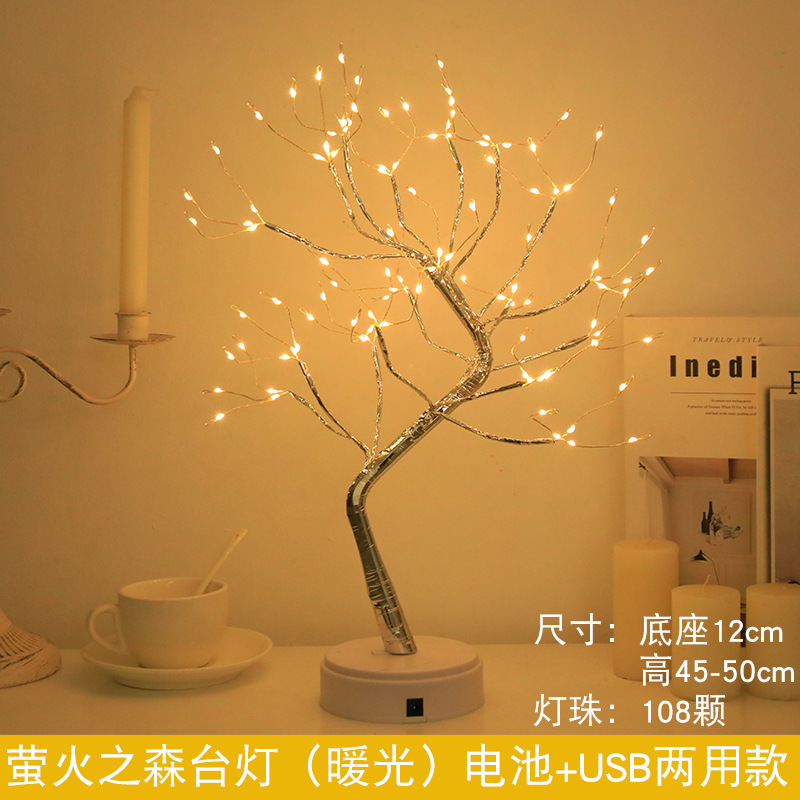 factory in stock amazon christmas style tree lamp led copper wire light pearl tree lamp interior decoration small night lamp