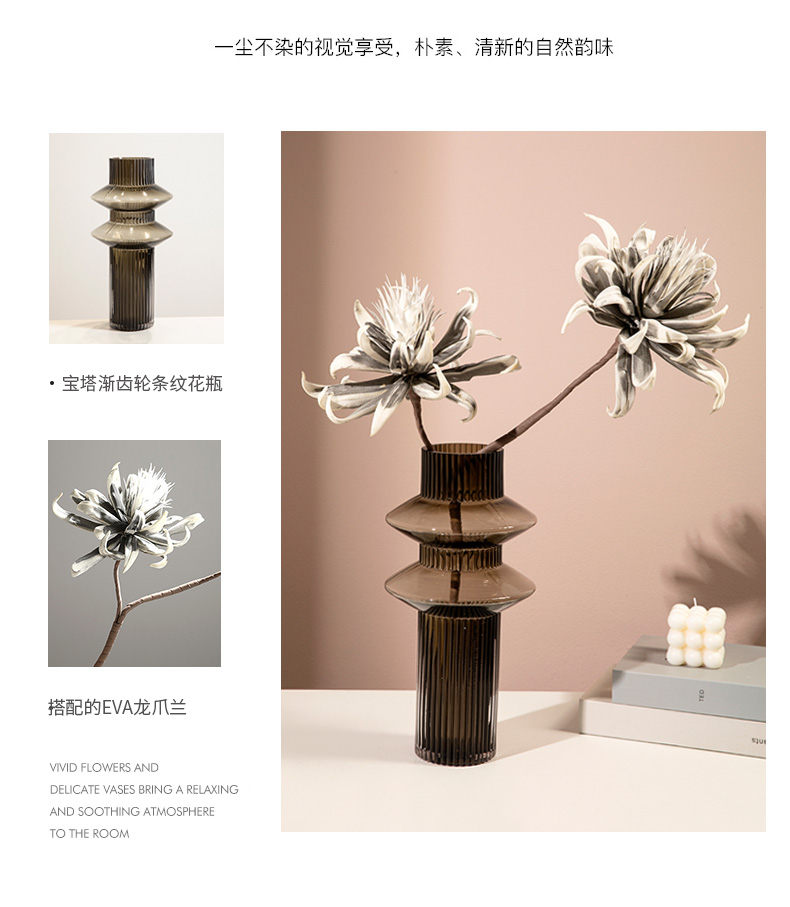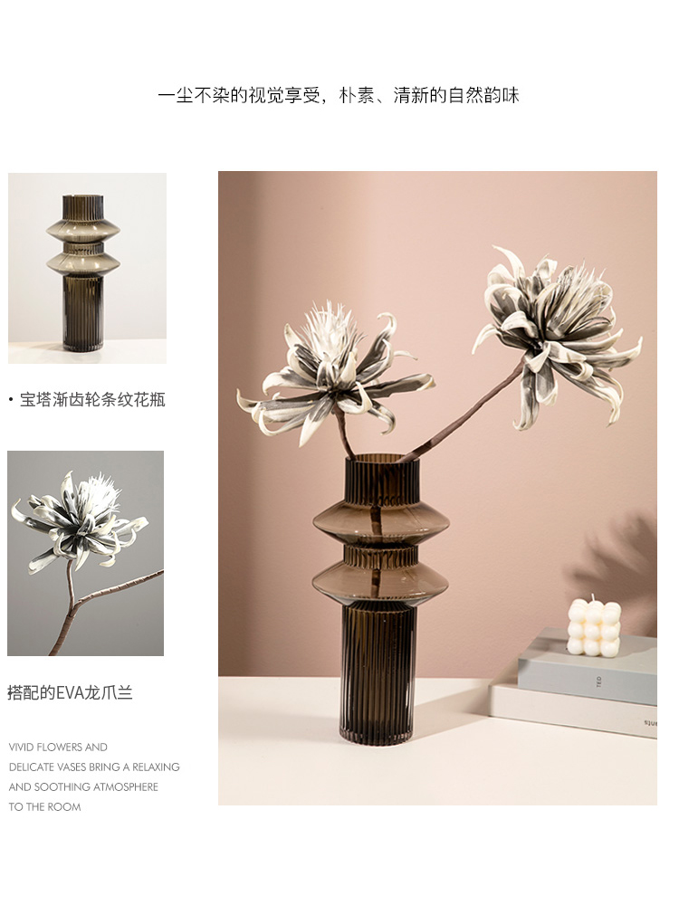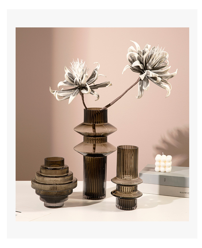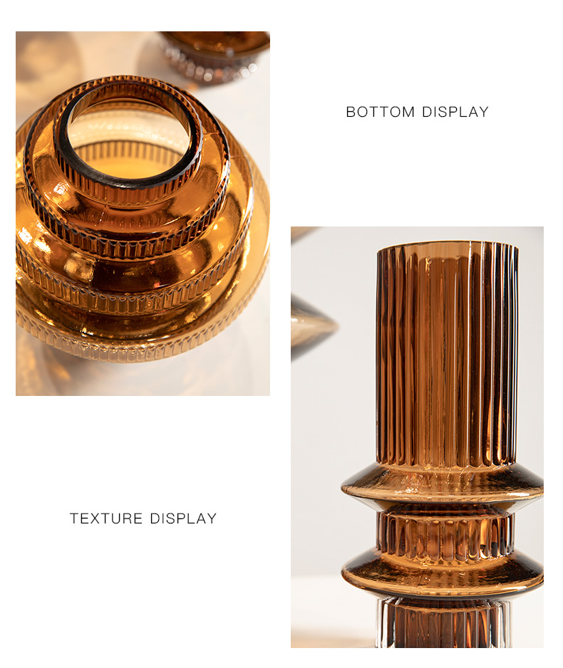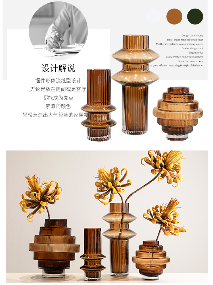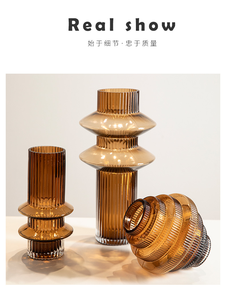 geometric pagoda gear vase glass striped hydroponic decoration retro living room coffee table flower container desktop model room 中文版