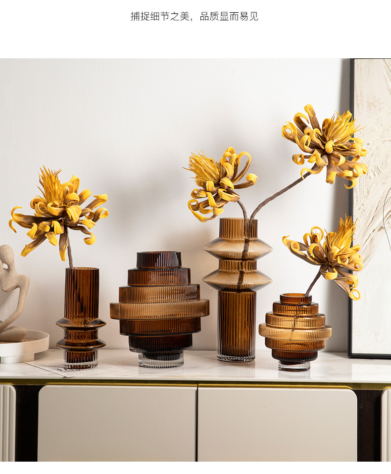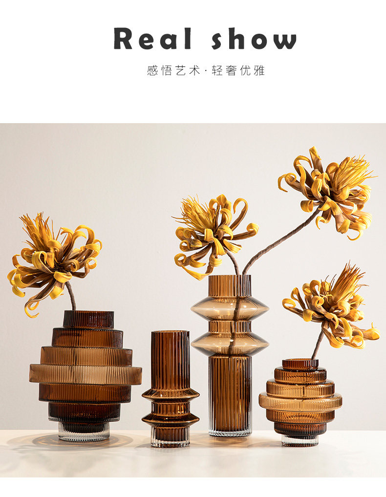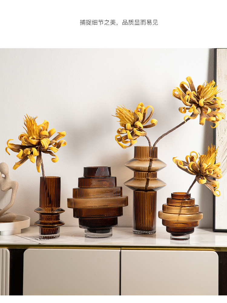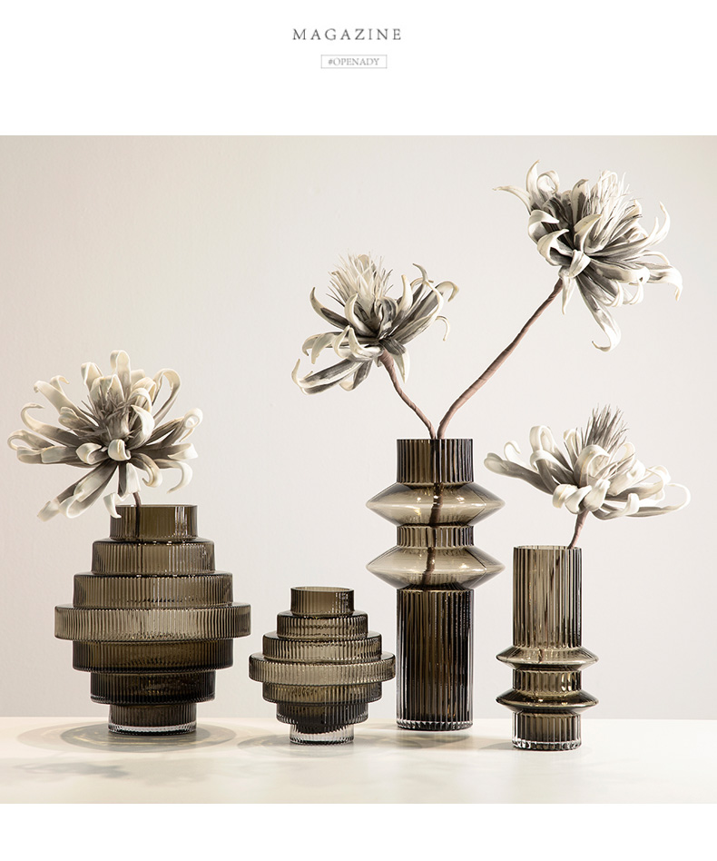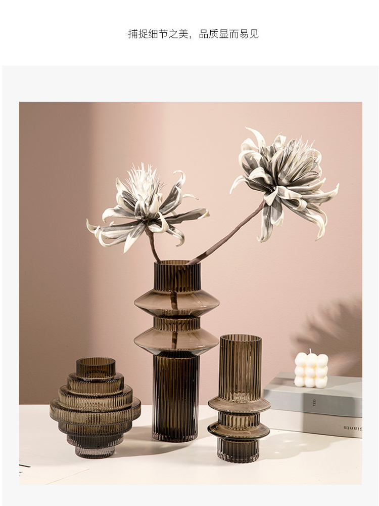 geometric pagoda gear vase glass striped hydroponic decoration retro living room coffee table flower container desktop model room 中文版