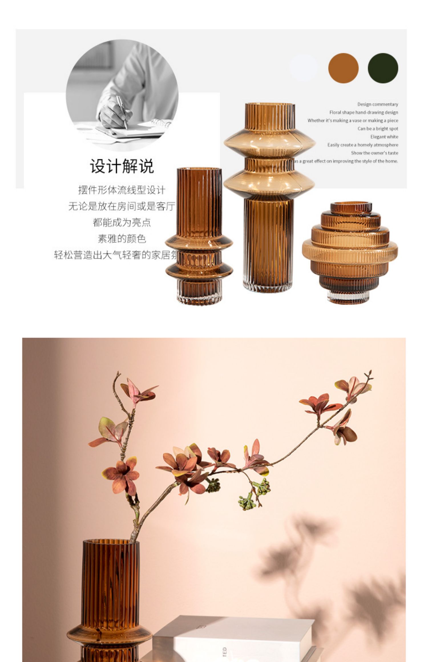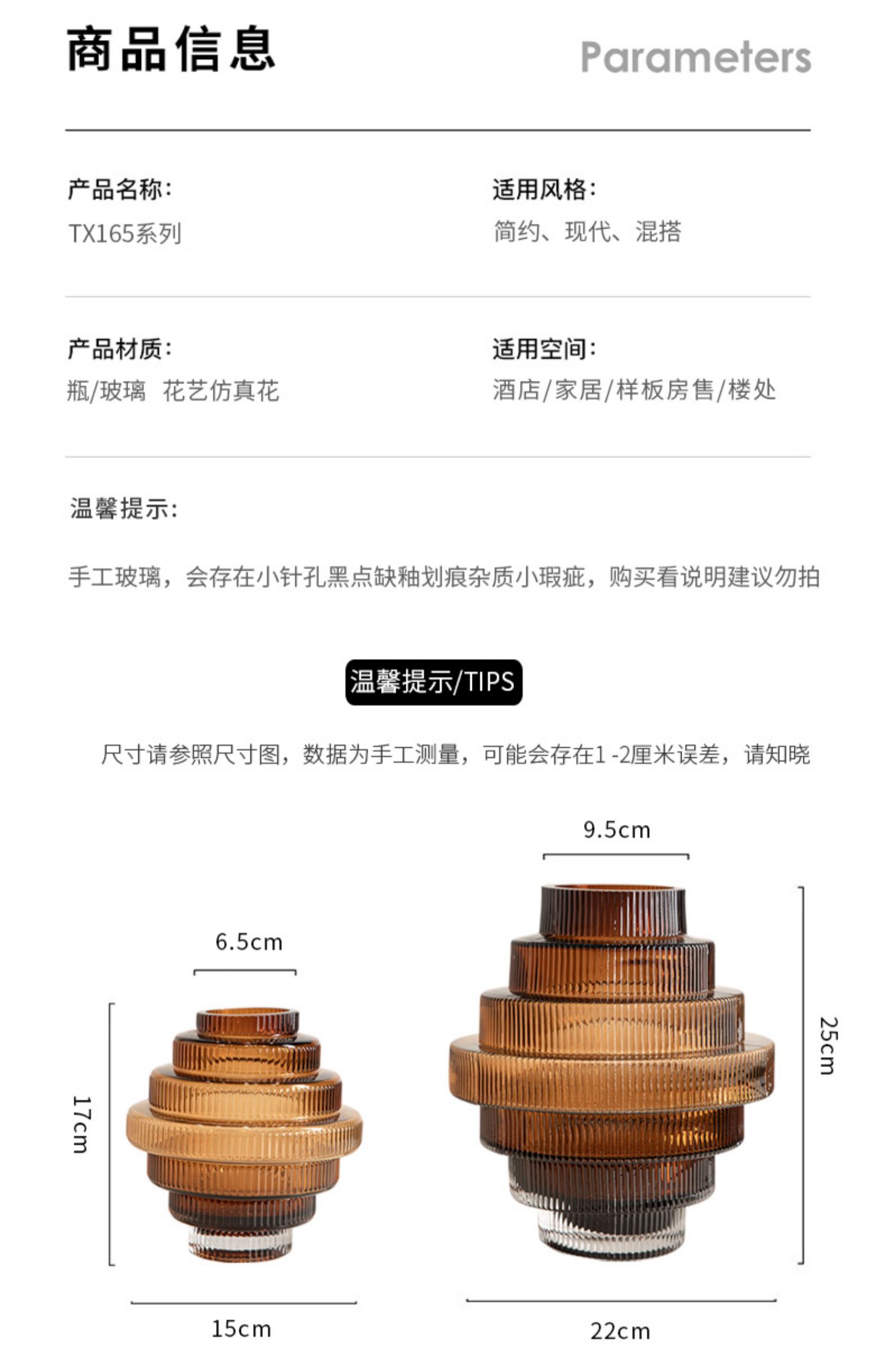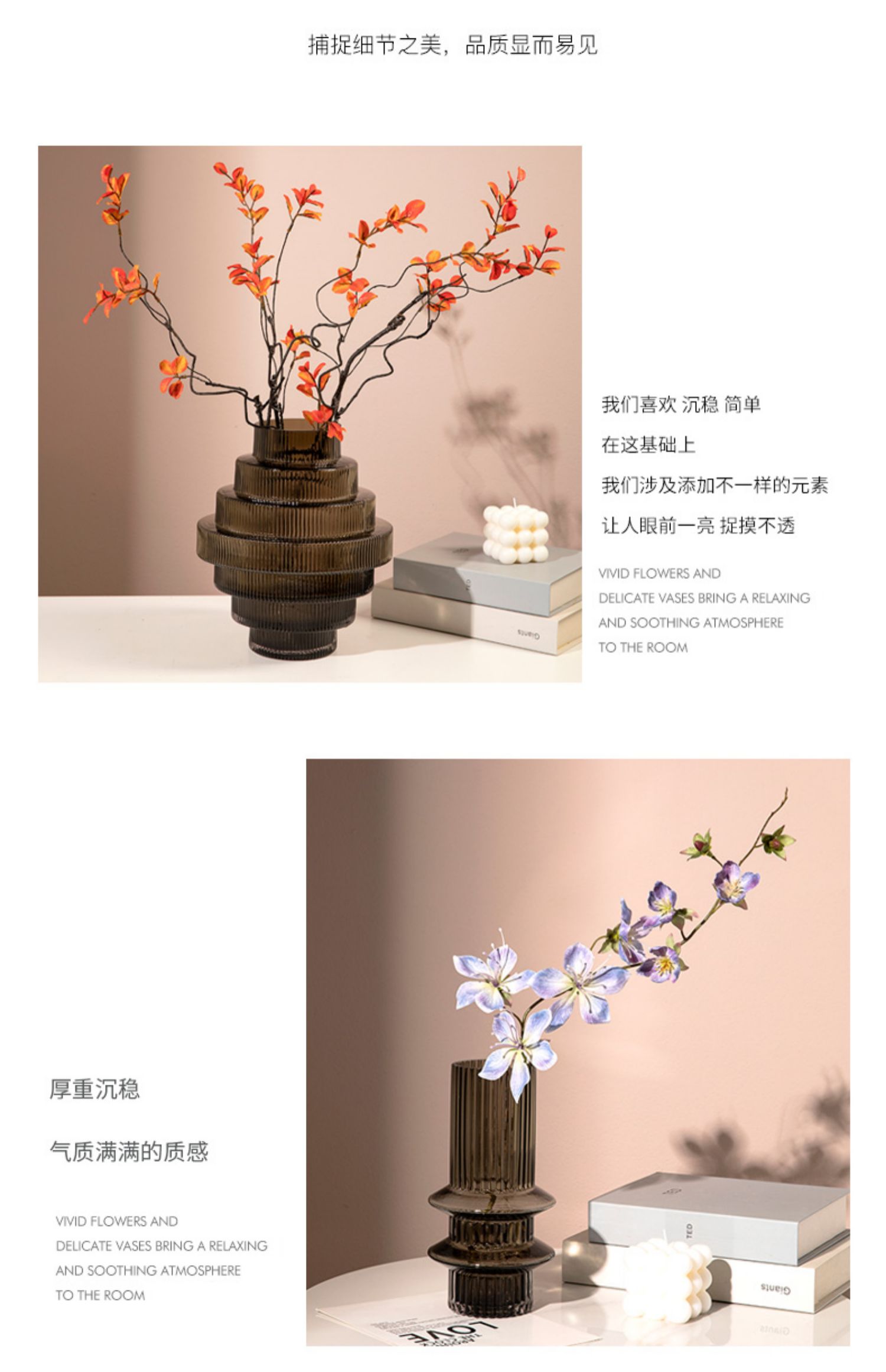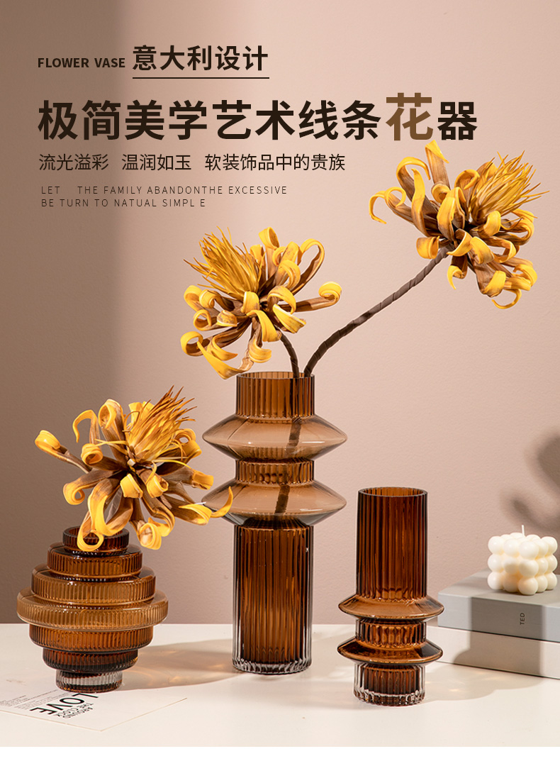 geometric pagoda gear vase glass striped hydroponic decoration retro living room coffee table flower container desktop model room 中文版