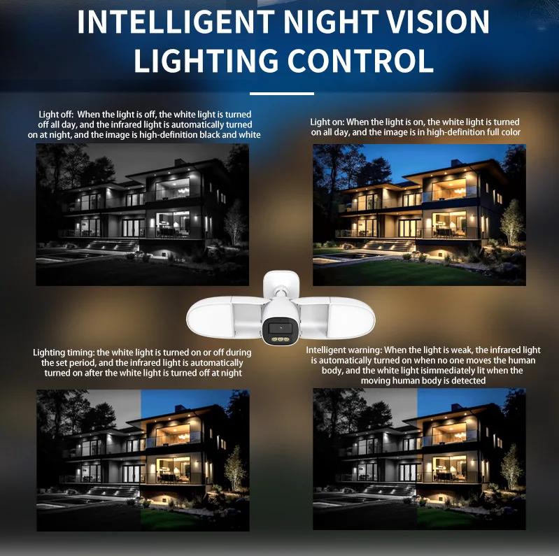 ICsee APP WiFi Outdoor Floodlight Camera Support Human Detection Support IR and color night vision;infrared + white light;Lumen:
