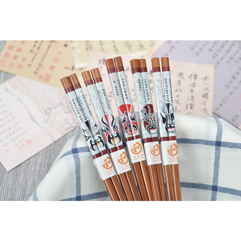 peking opera facial makeup 5 pairs printed bamboo chopsticks