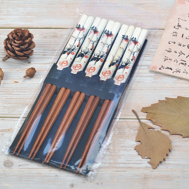 stepping snow cold plum 5 pairs printed bamboo chopsticks