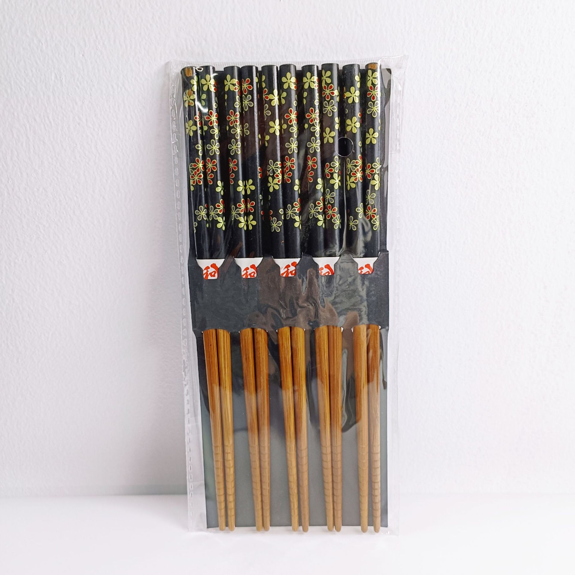 half floating flowers 5 pairs printed bamboo chopsticks